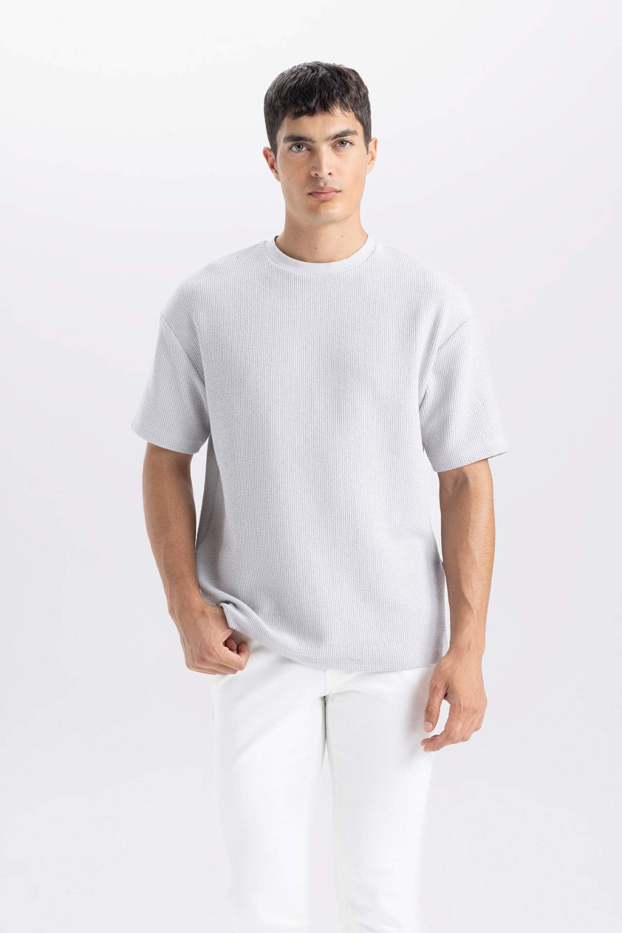 DeFacto Boxy Fit Bisiklet Yaka Kısa Kollu Tişört C8724AX24AUGR184