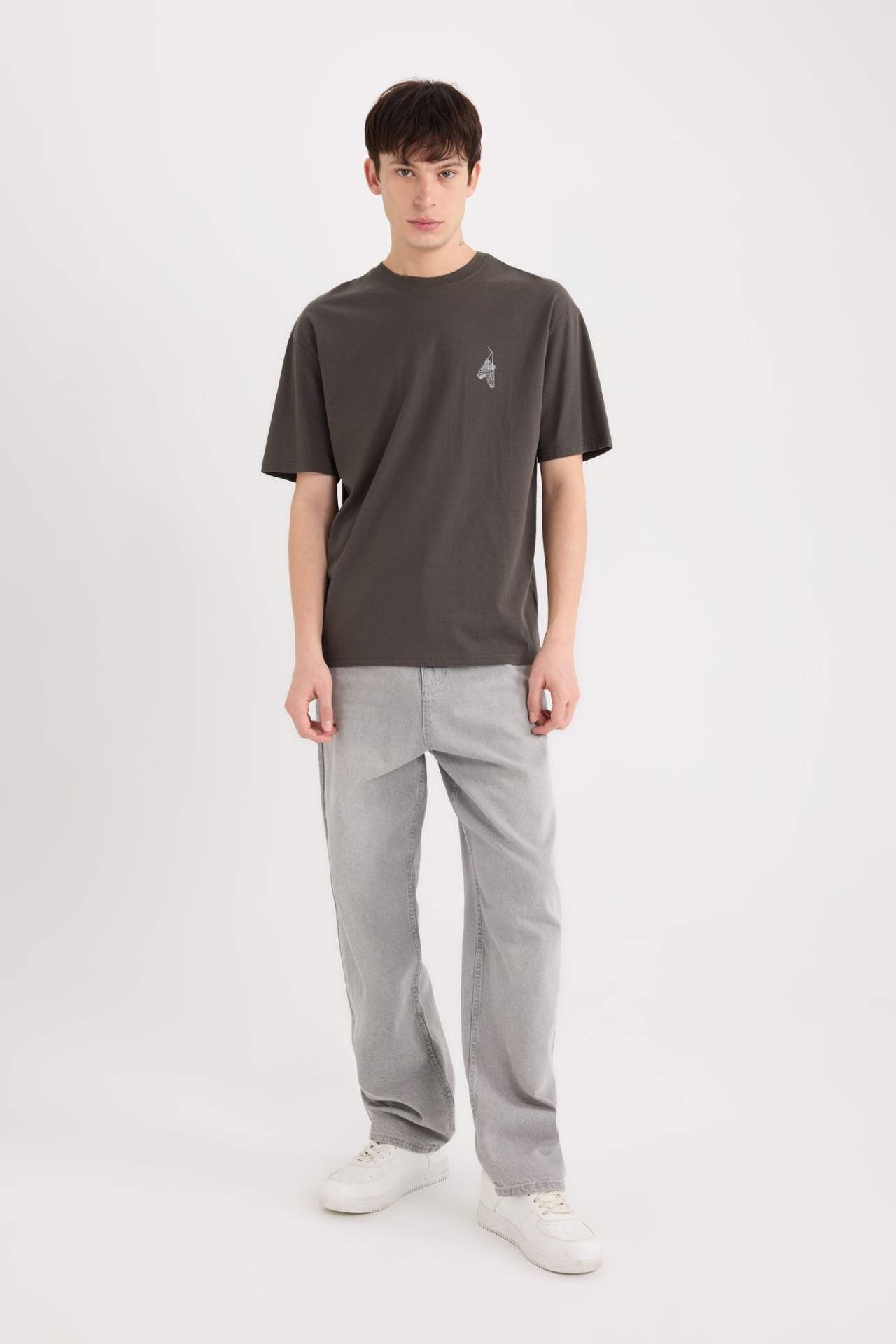DeFacto Boxy Fit Bisiklet Yaka Sırt Baskılı Kısa Kollu Tişört D5511AX25SPAR104