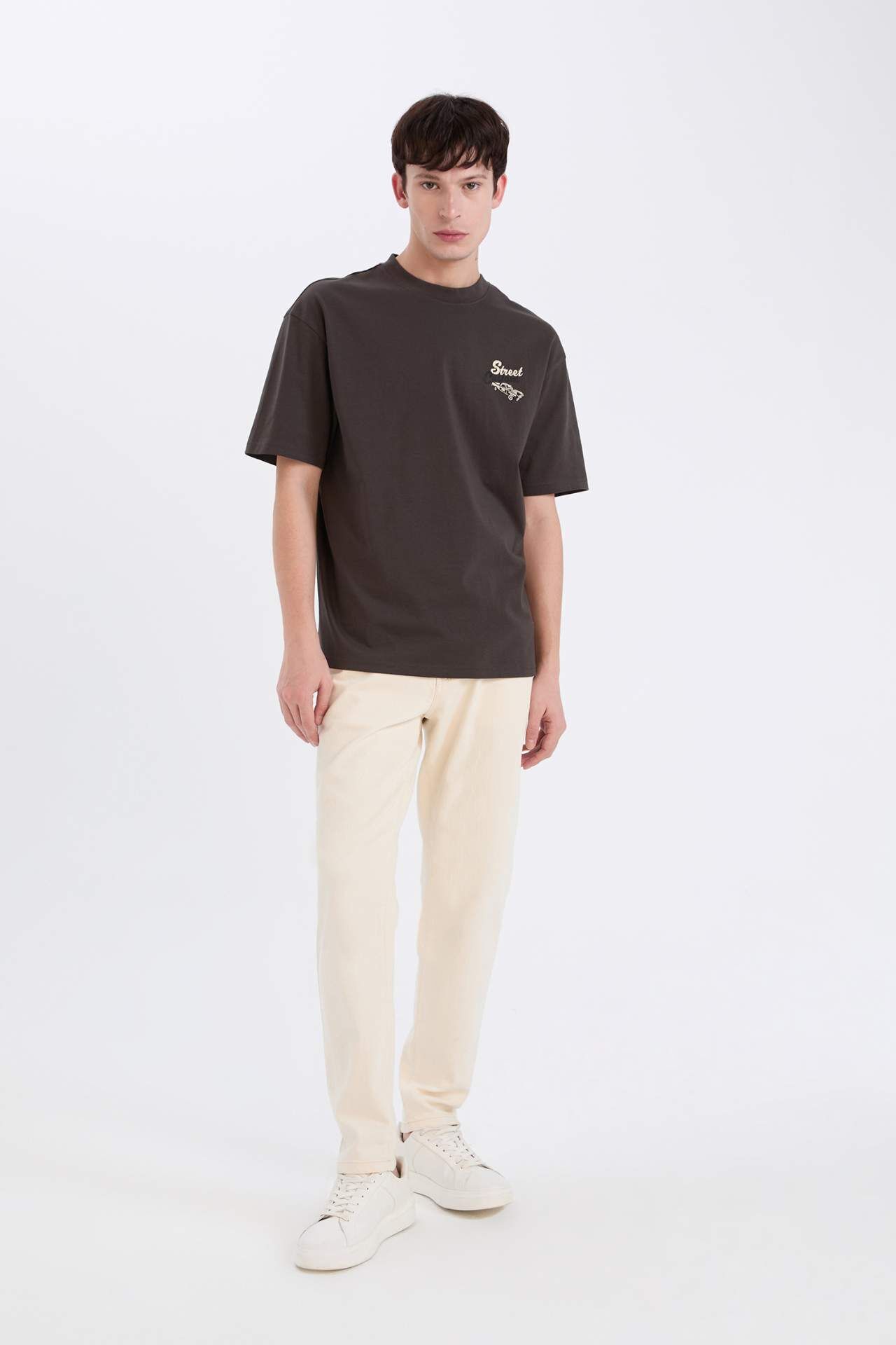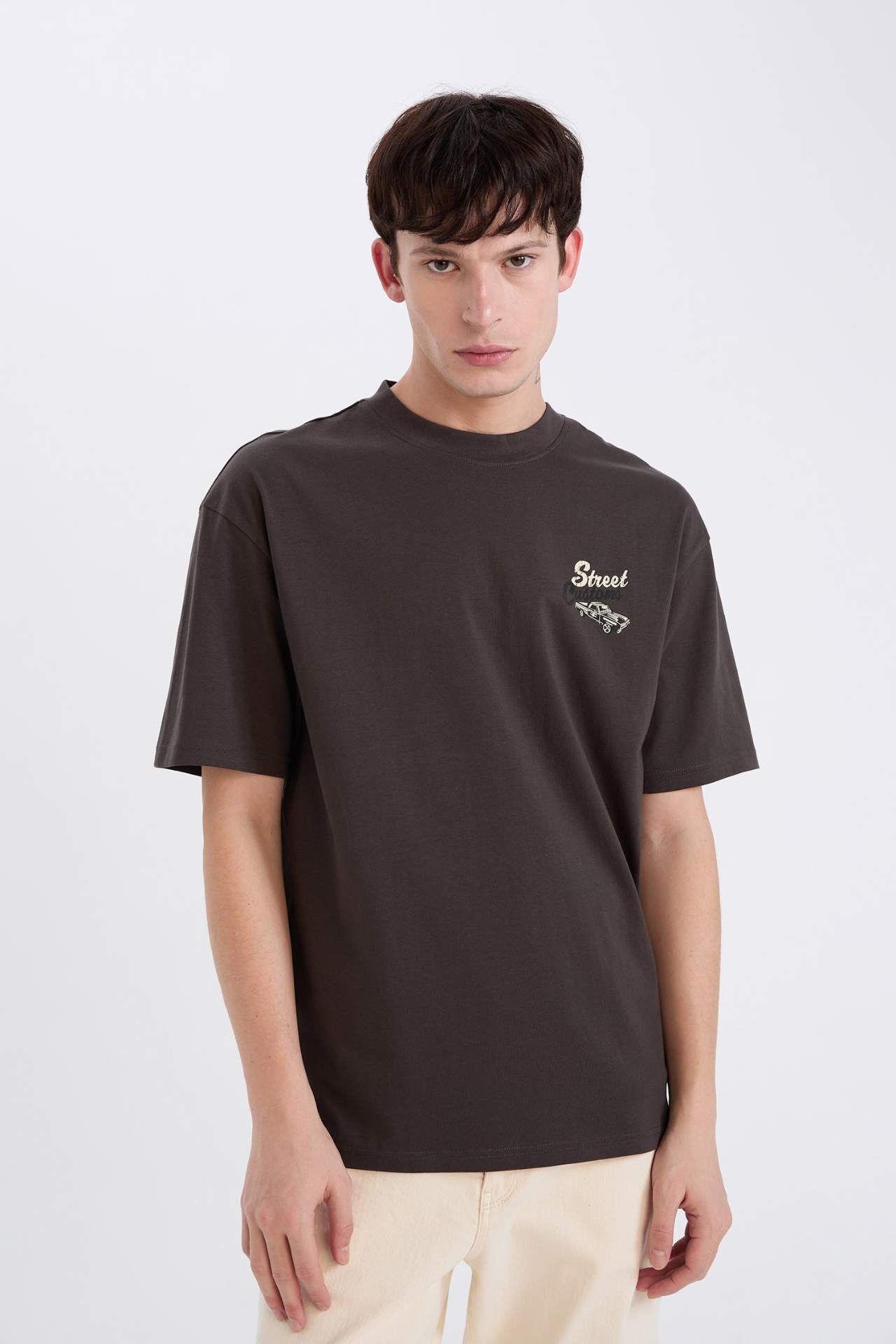 DeFacto Boxy Fit Bisiklet Yaka Sırt Baskılı Kısa Kollu Tişört D5584AX25SPAR221