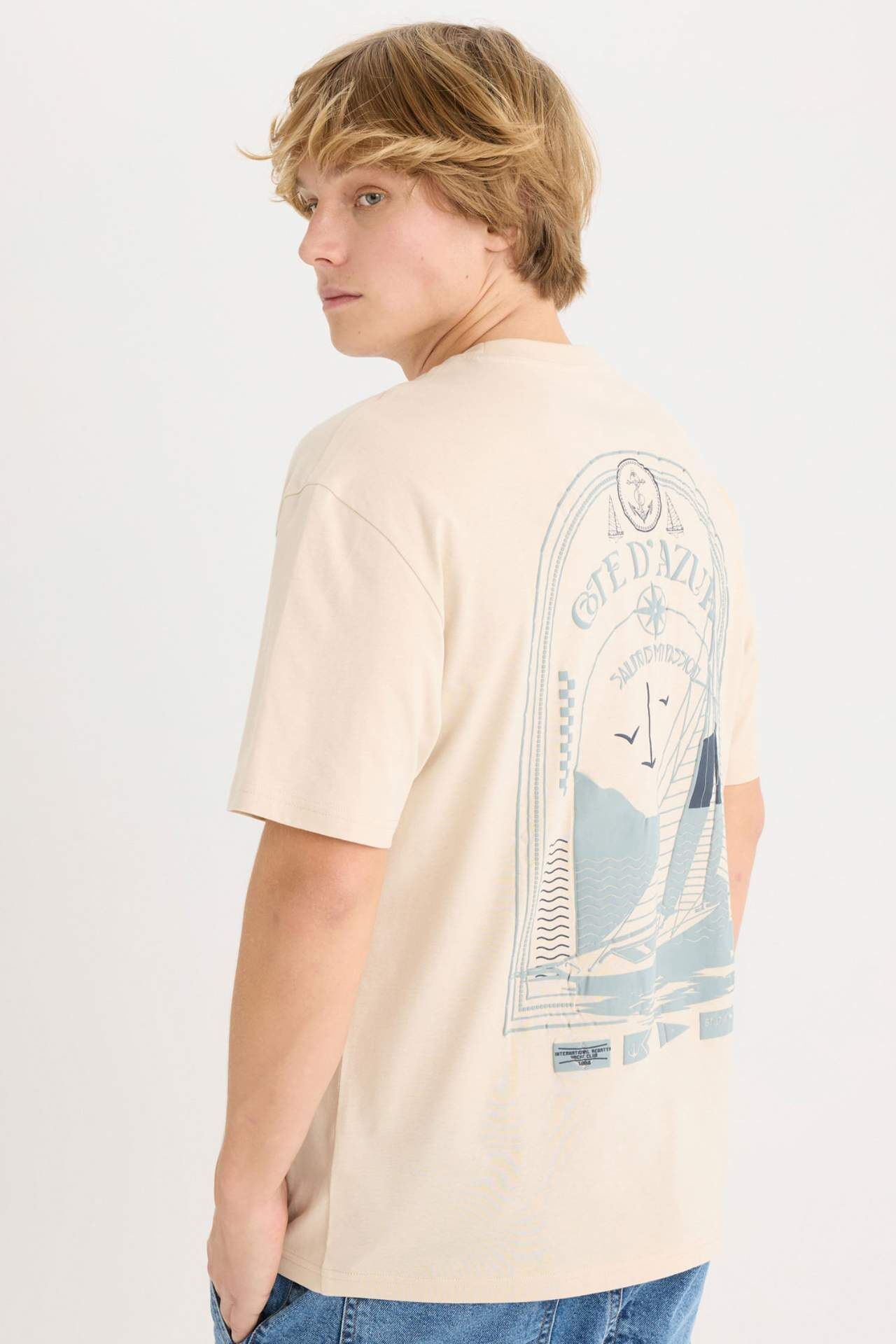 DeFacto Boxy Fit Bisiklet Yaka Sırt Baskılı Kısa Kollu Tişört D7815AX25SPBG702