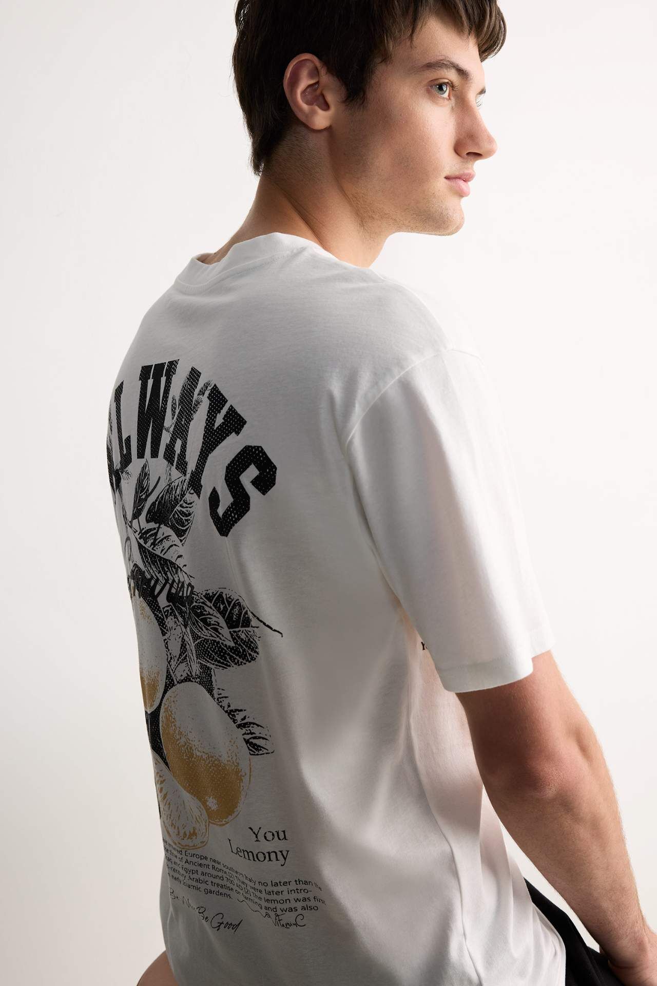 DeFacto Boxy Fit Bisiklet Yaka Sırt Baskılı Kısa Kollu Tişört E0910AX25SMER105