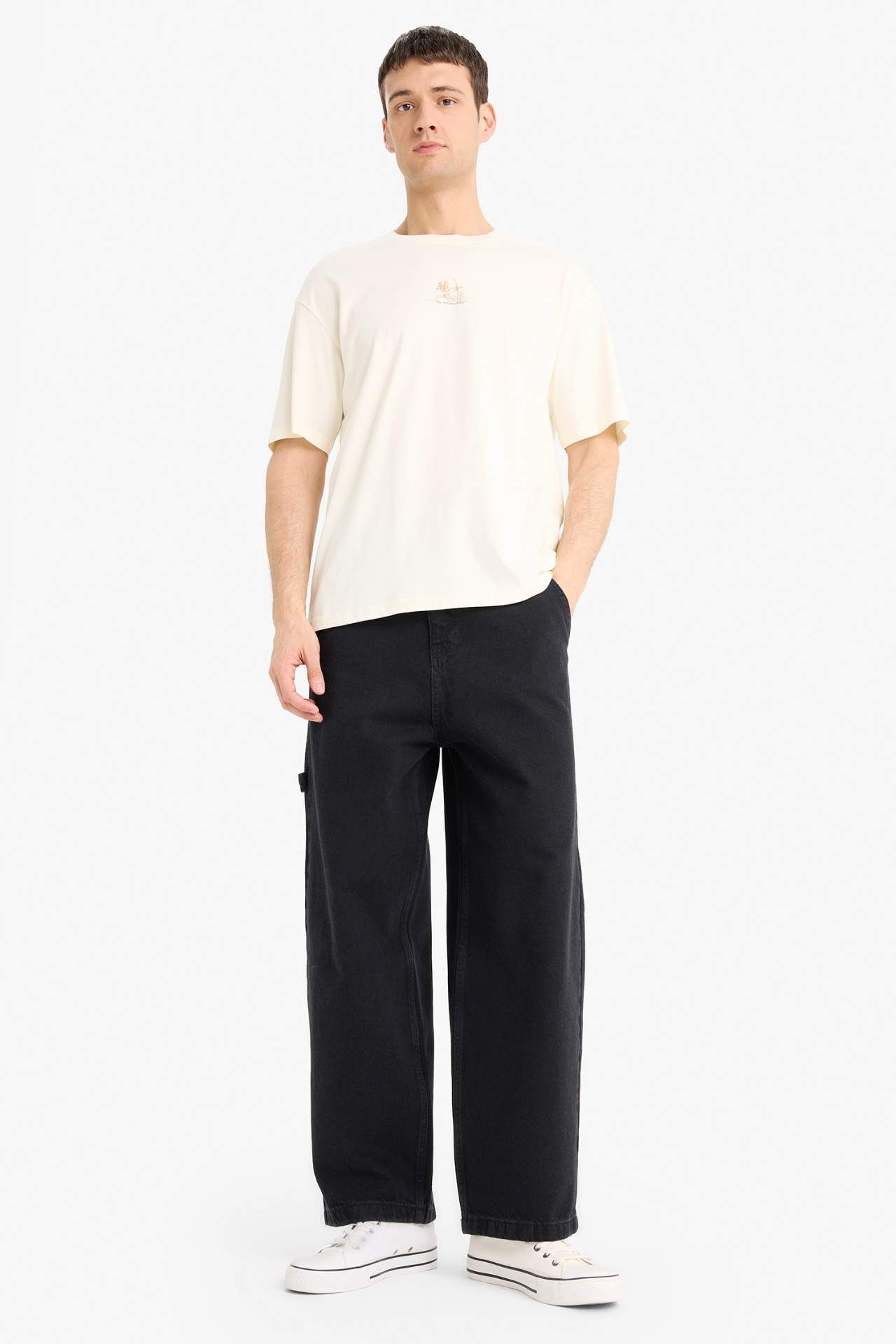 Boxy fit kesimi ve bisiklet yaka tasarımıyla konforlu bir kullanım sunan kısa kollu tişört, sırtındaki şık baskıyla tarzınızı tamamlar. Günlük kombinleriniz için ideal bir tercih. Pamuk 100%,Pamuk 100%,Pamuk 100%,Pamuk 100%,Pamuk 100%,Pamuk 100%,Pamuk 100% Manken Bedeni: Göğüs: 98 Boy: 1,89 Basen: 98 Bel: 80