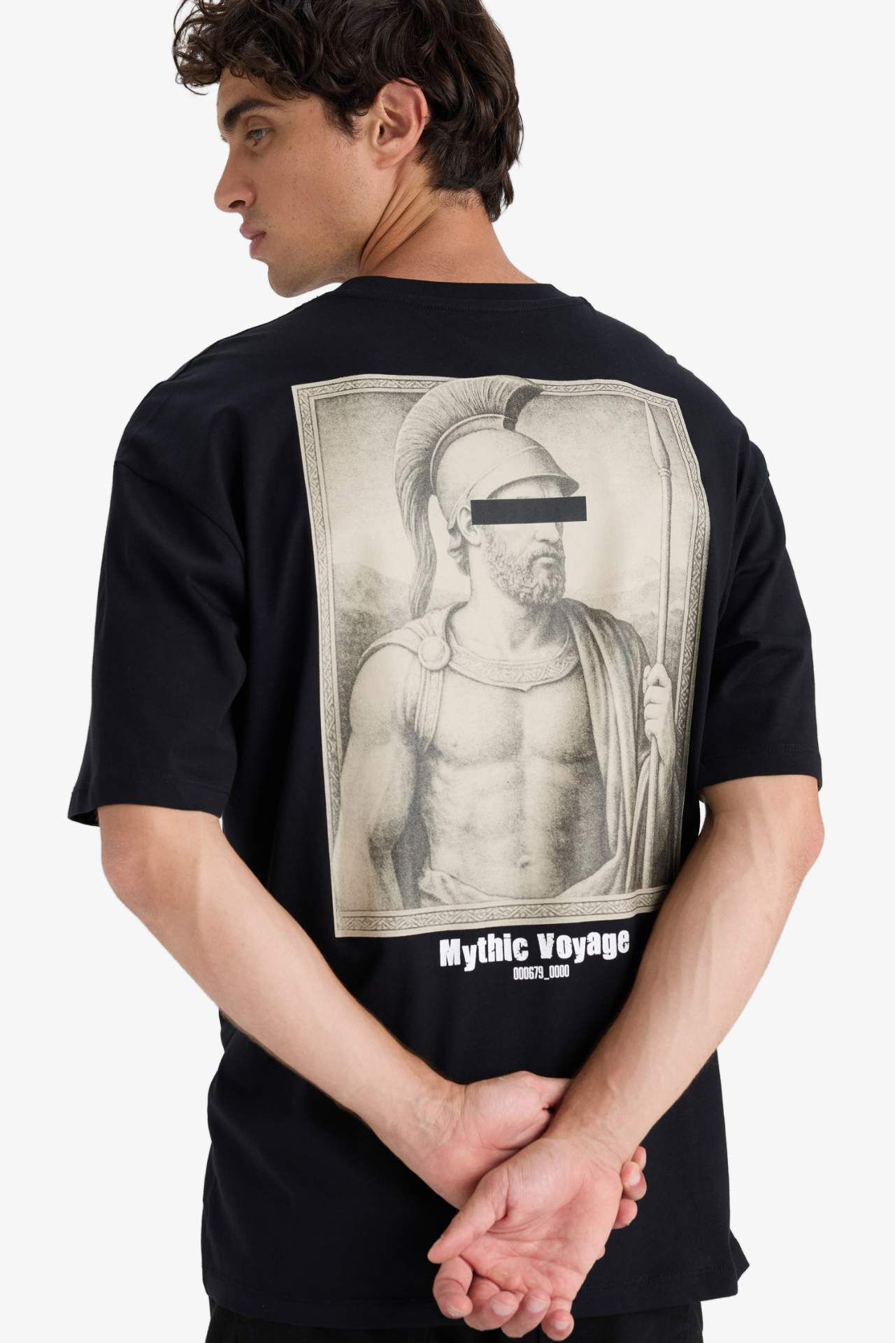 DeFacto Boxy Fit Bisiklet Yaka Sırt Baskılı Kısa Kollu Tişört F8327AX25AUBK81
