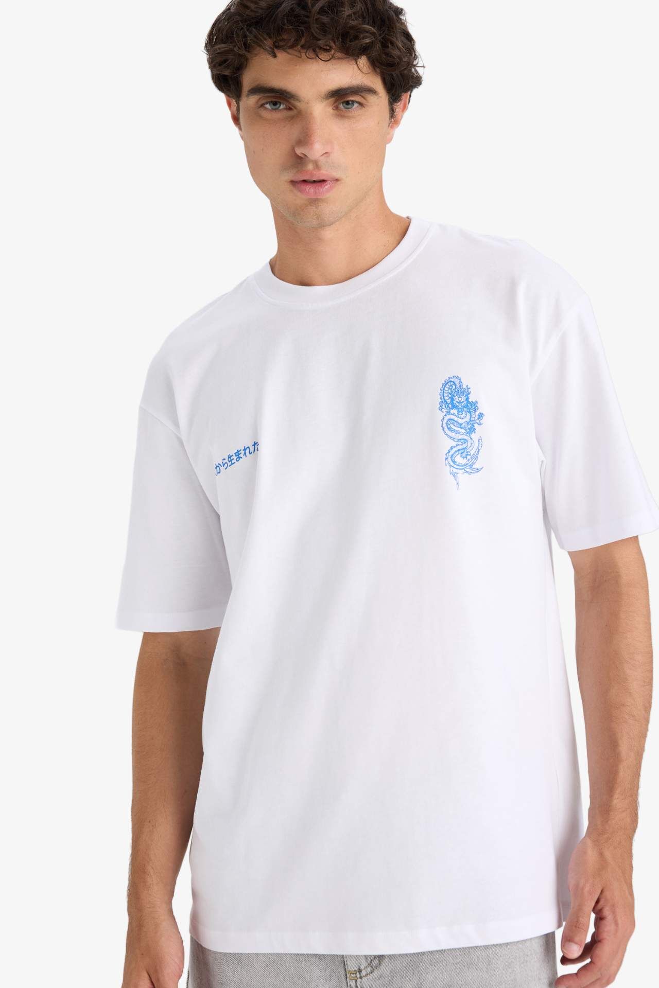 DeFacto Boxy Fit Bisiklet Yaka Sırt Baskılı Kısa Kollu Tişört F8595AX25HSWT34