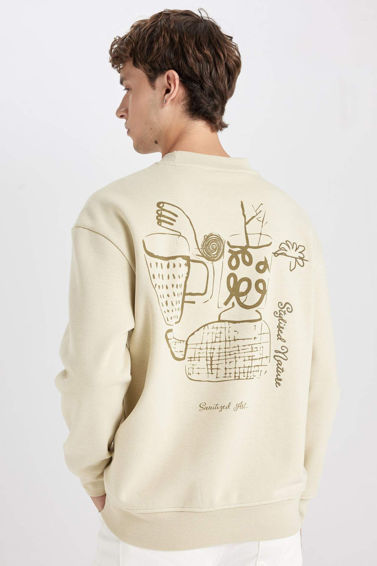 DeFacto Boxy Fit Bisiklet Yaka Sırt Baskılı Sweatshirt