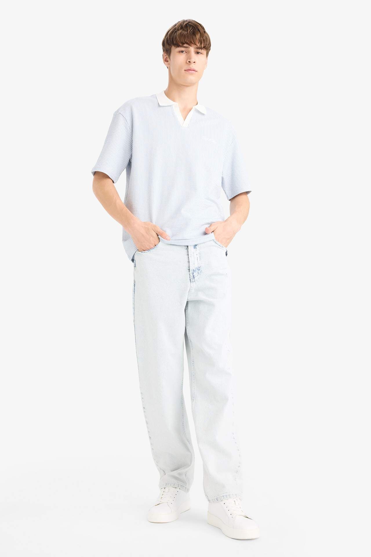 DeFacto Boxy Fit Polo Yaka Slogan Baskılı Kısa Kollu Polo Tişört F8351AX25AUBE177