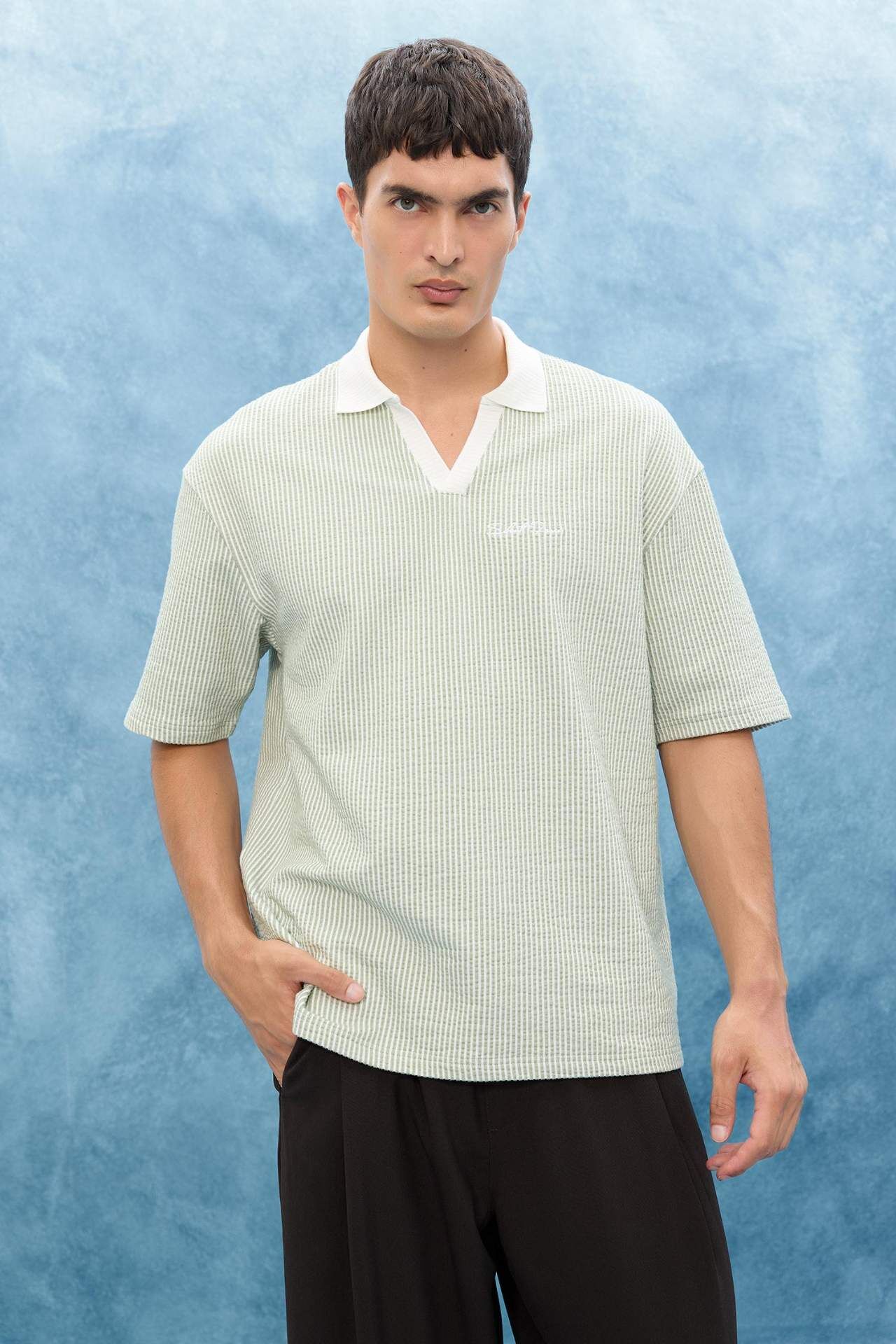 DeFacto Boxy Fit Polo Yaka Slogan Baskılı Kısa Kollu Polo Tişört F8351AX25AUGN1180