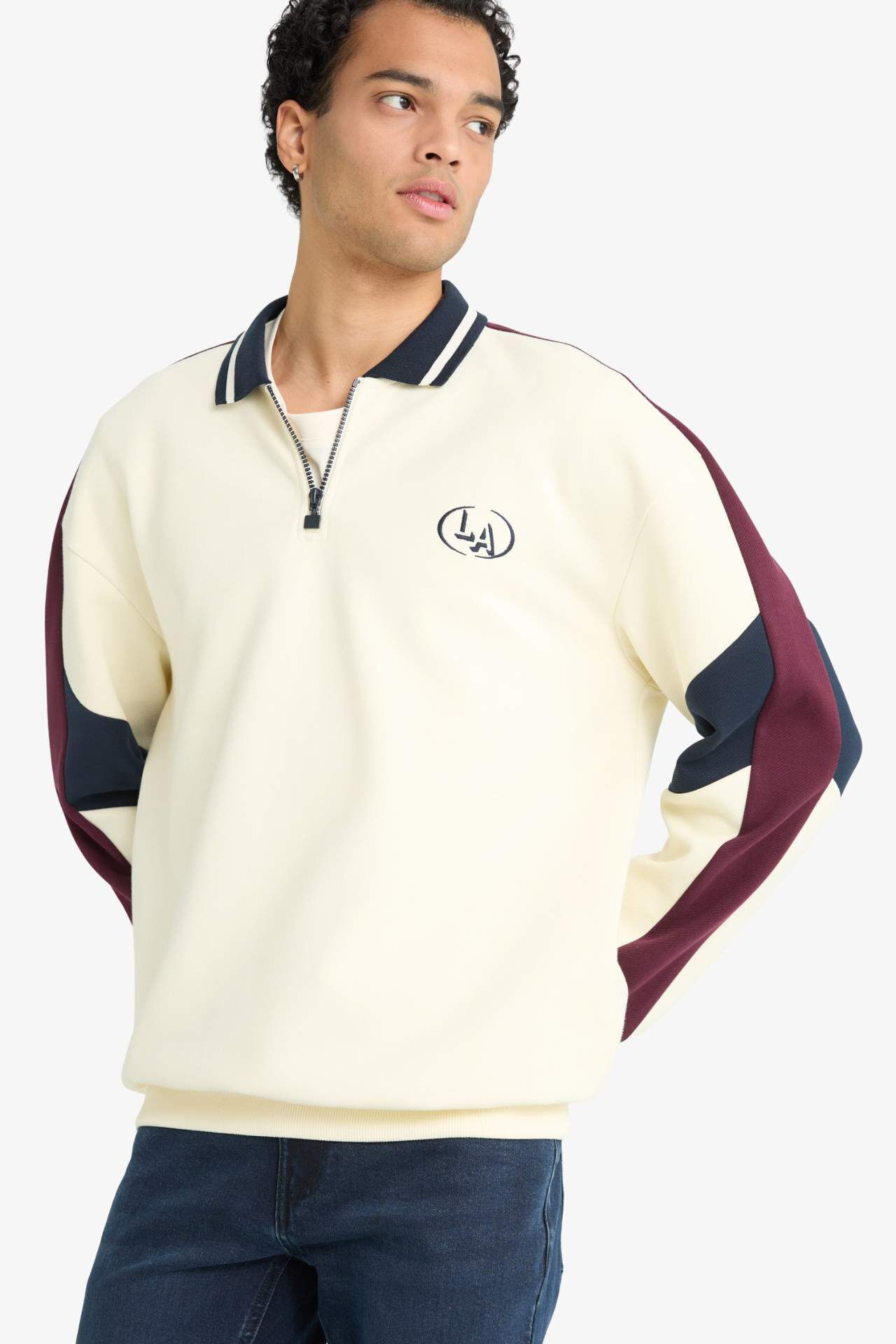 DeFacto Boxy Fit Polo Yaka Sweatshirt F0114AX25AUER91