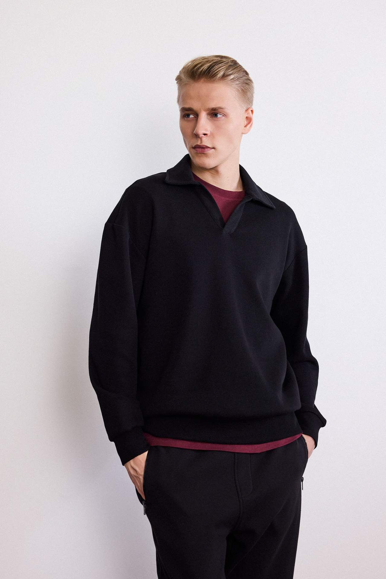 Boxy Fit Polo Yaka Sweatshirt