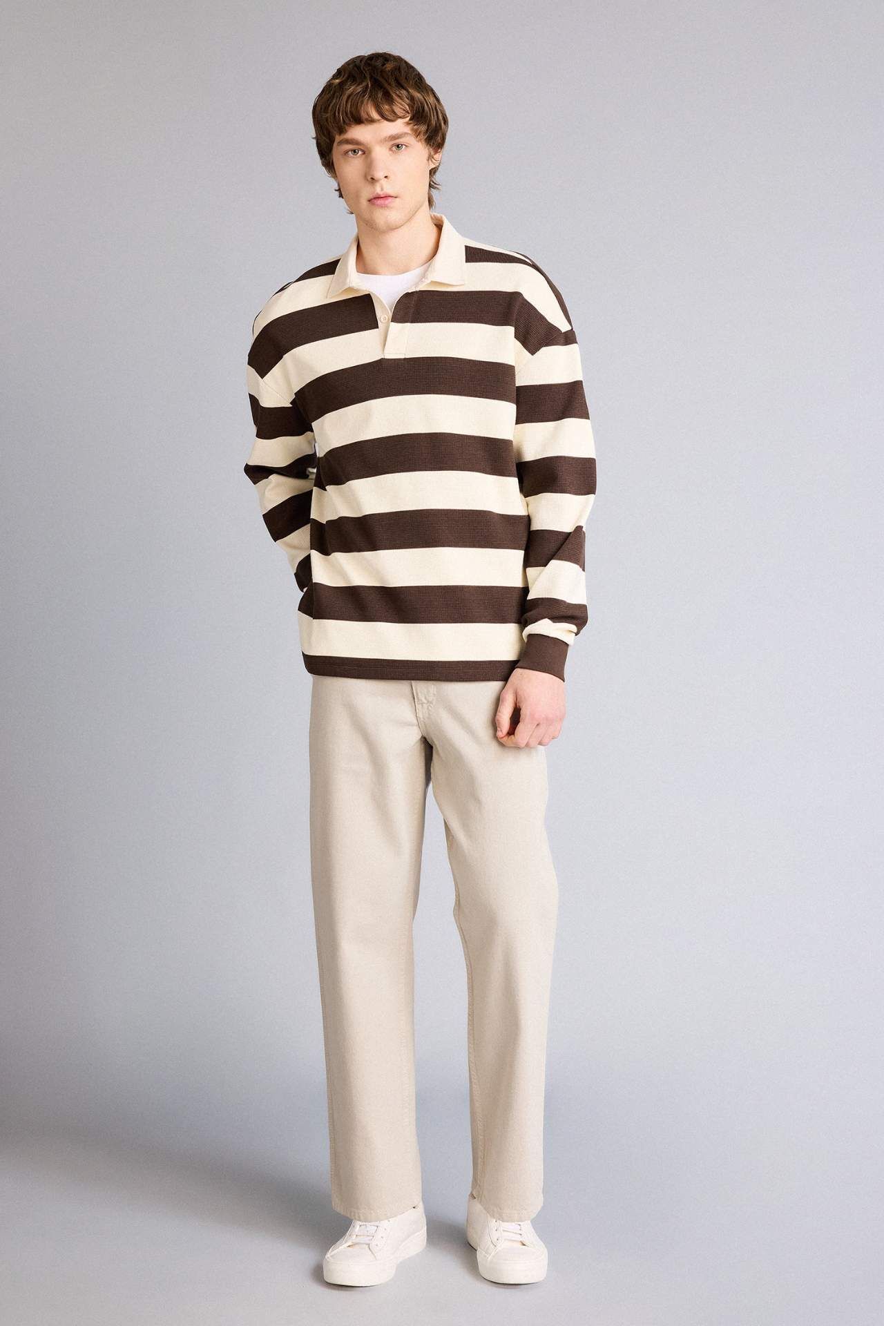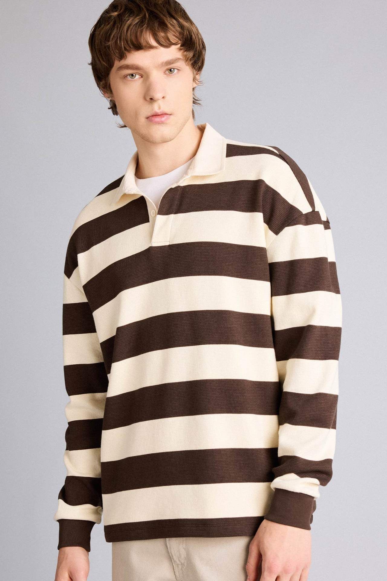 Boxy Fıt Polo Yaka Waffle Sweatshirt