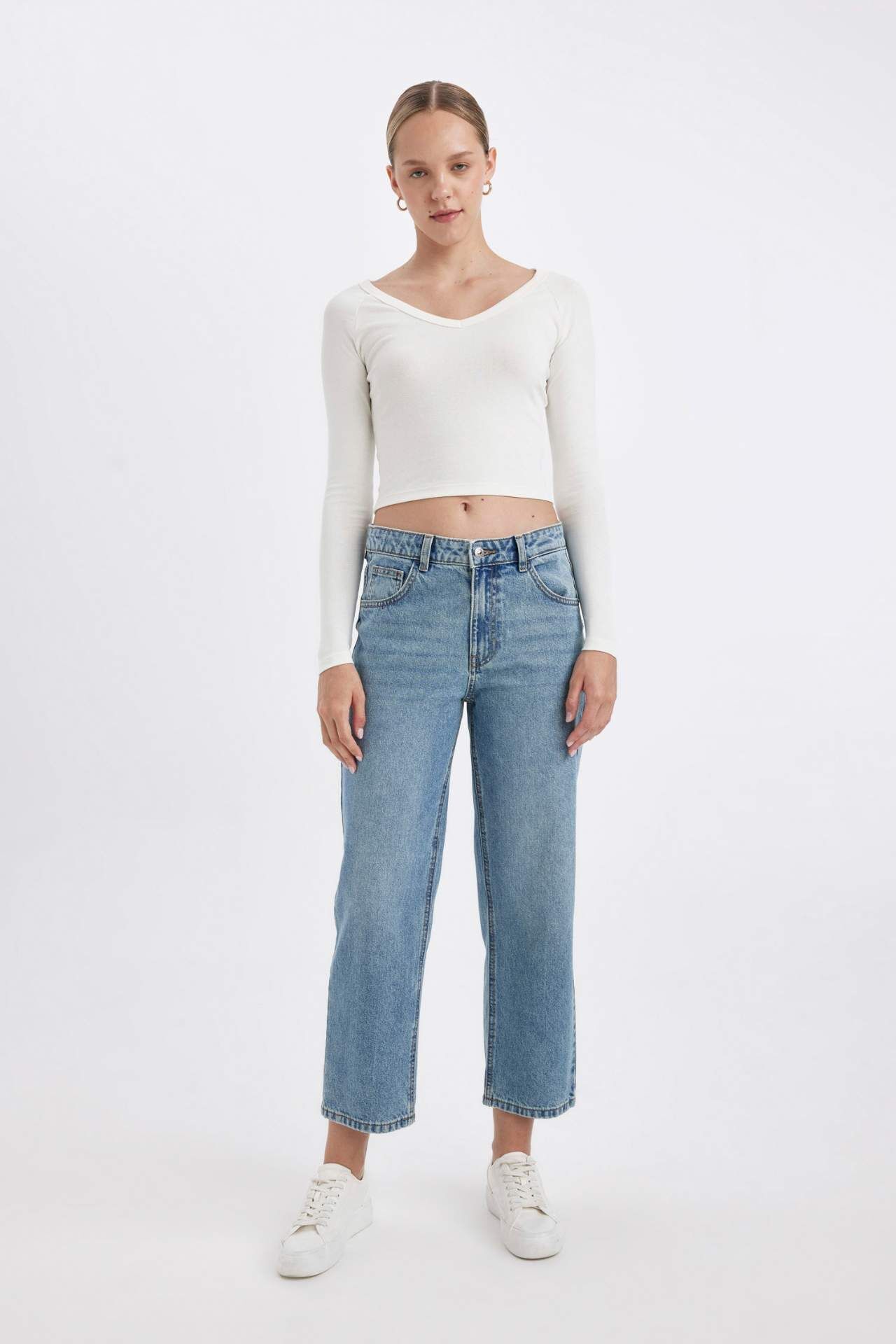 Boyfriend Yüksek Bel Bilek Boy Jean Yıkamalı Pantolon
