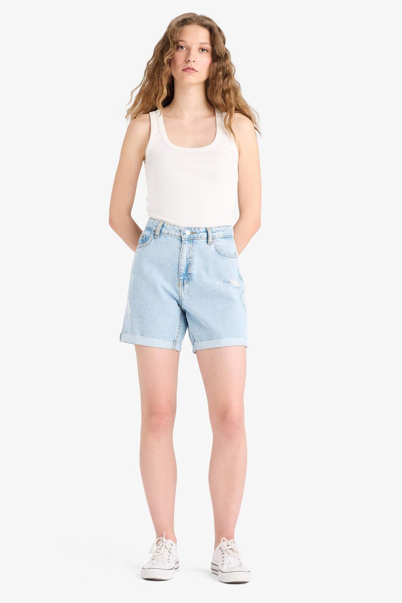 DeFacto Boyfriend Yüksek Bel Duble Paça Jean Şort E0934AX25SMNM39
