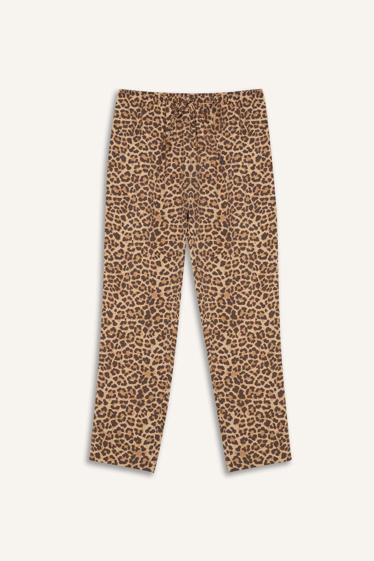 DeFacto Carrot Fit Leopar Desenli Modal Kumaş Pantolon Çift Cepli Yüksek Bel Düz Paça