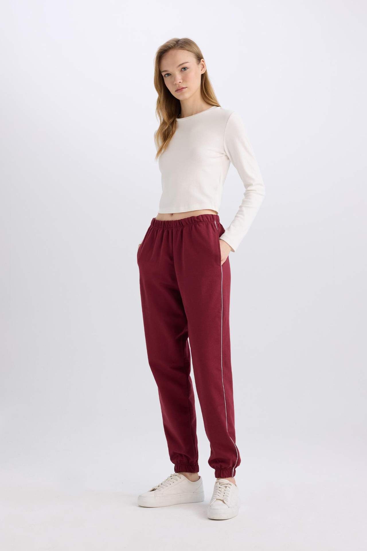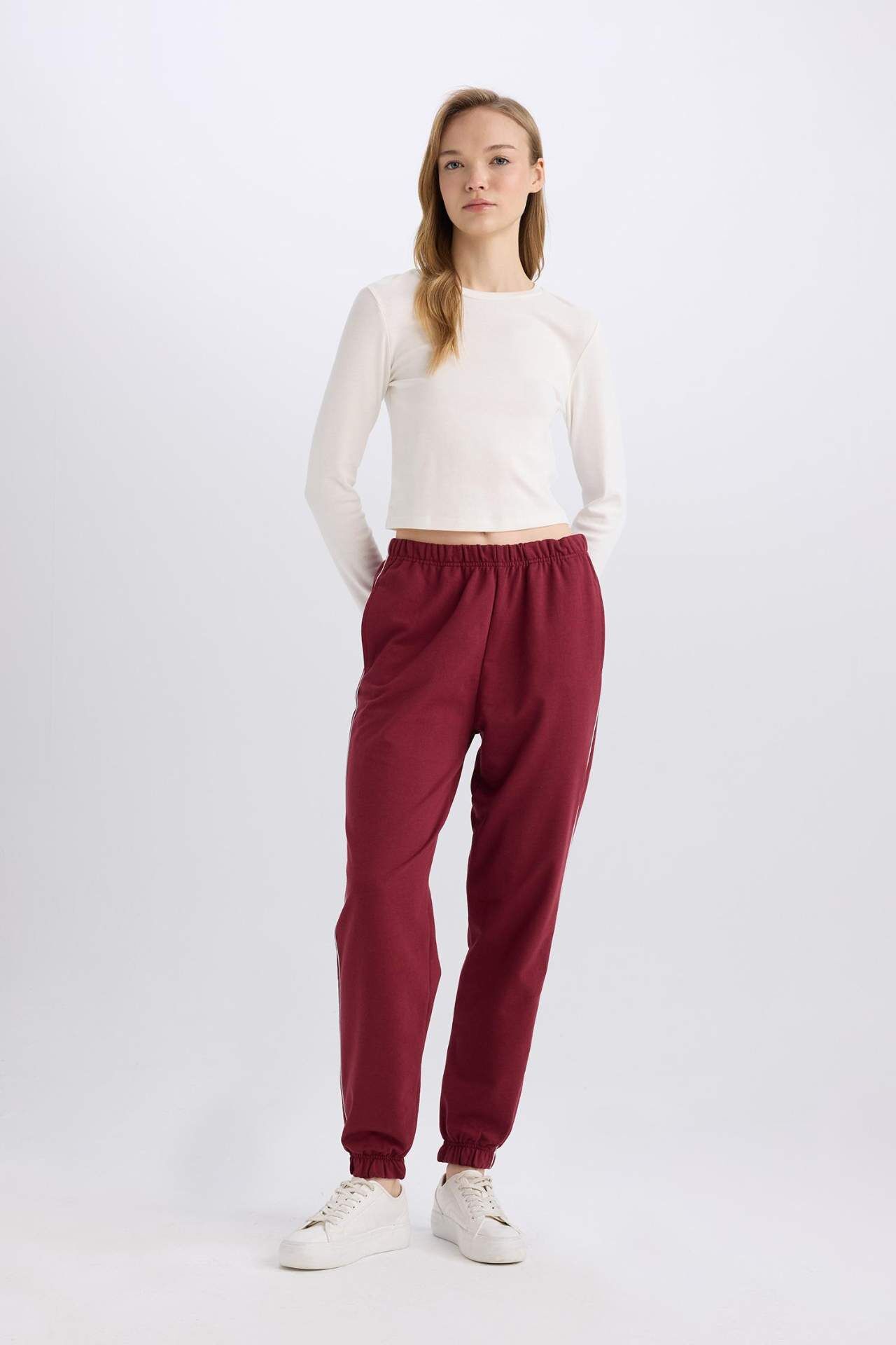DeFacto Cepli Esnek Belli Bağcıklı Dar Paça Uzun Boy Bordo Jogger Eşofman Altı
