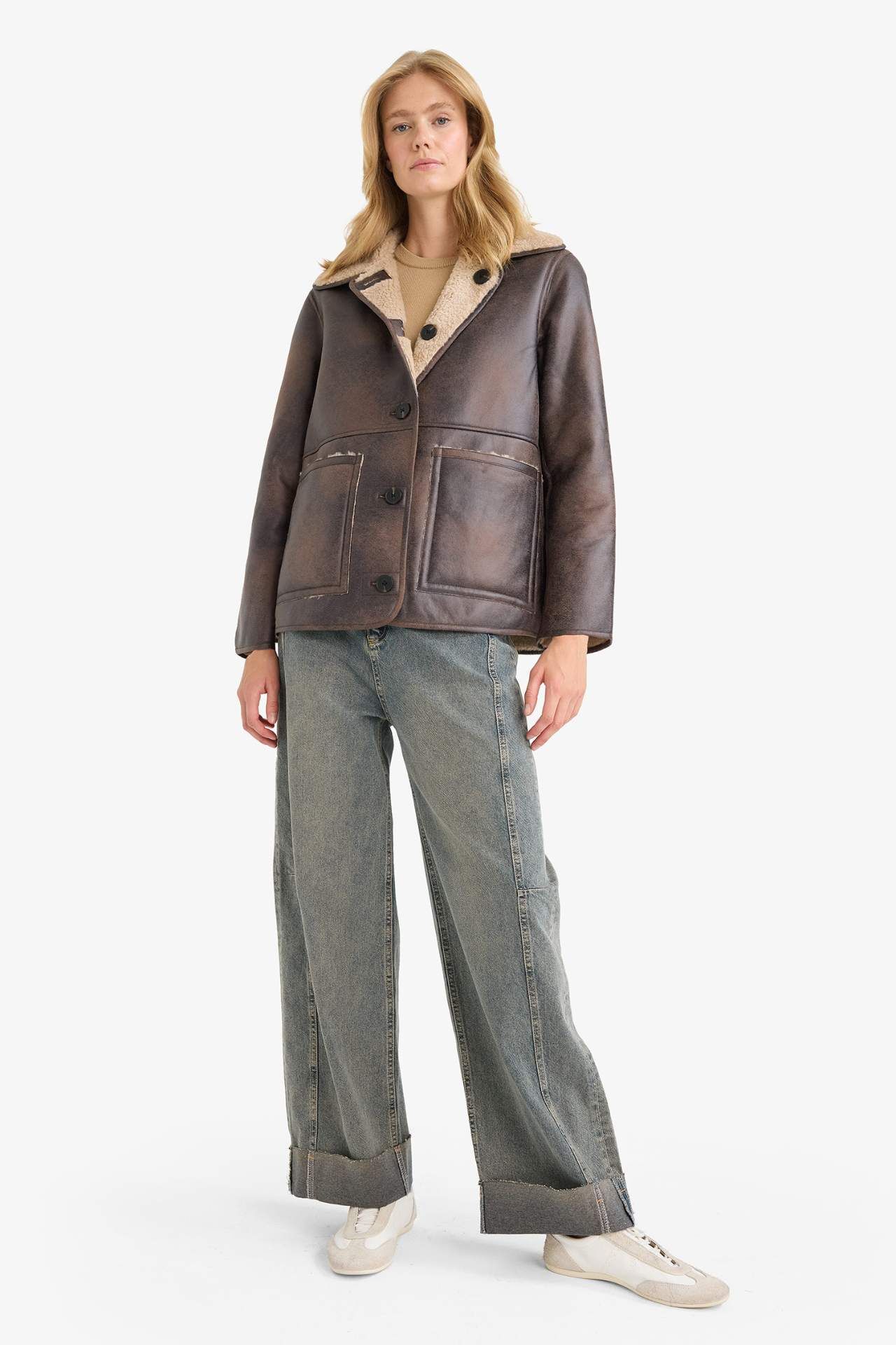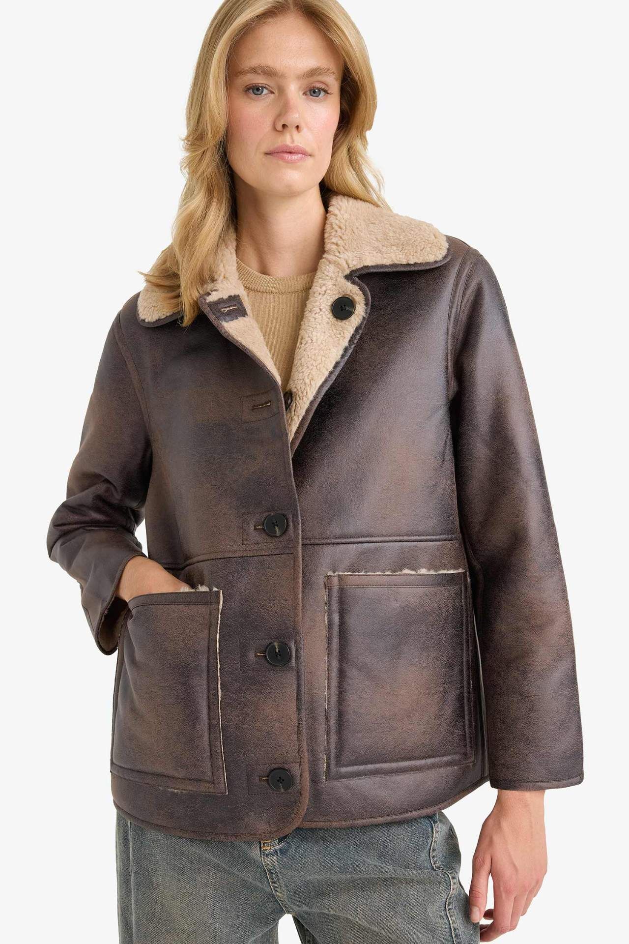 Çift Taraflı Regular Fit Polo Yaka Suni Kürk Astarlı Mont