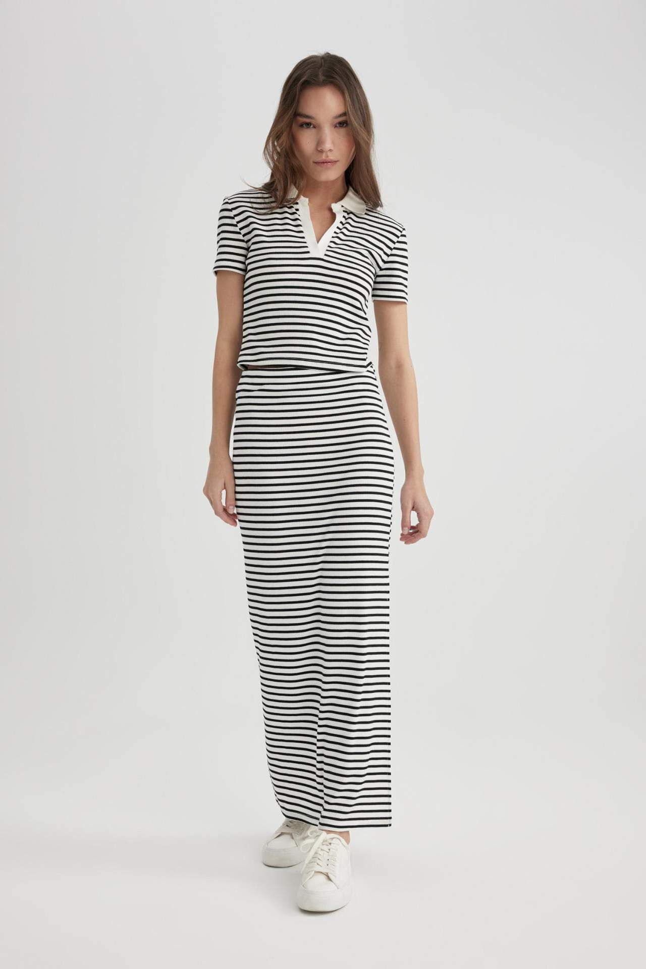 DeFacto Çizgili Fitilli Kaşkorse Maxi Etek