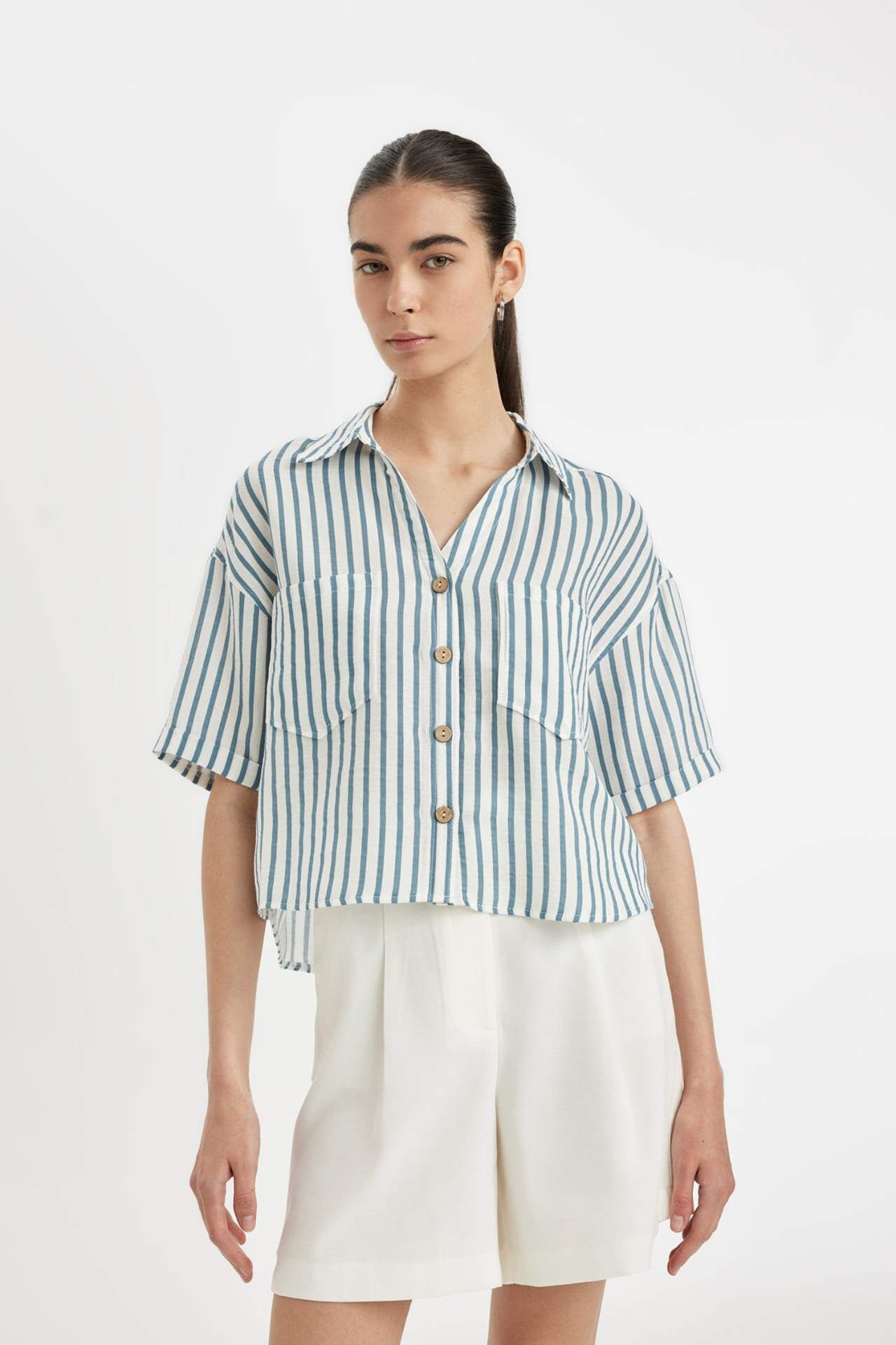 DeFactoFit Çizgili Müslin Kısa Kollu Gömlek