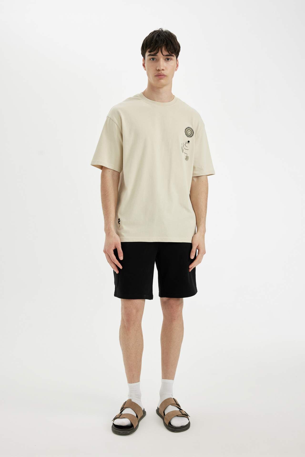 DeFactoFit Comfort Fit Bisiklet Yaka Baskılı Kısa Kollu Tişört C1867AX24SMBG307
