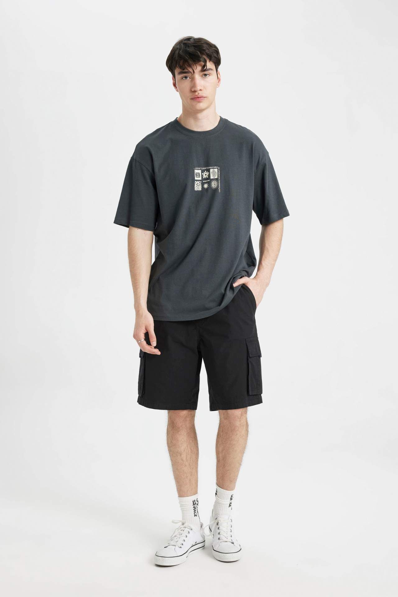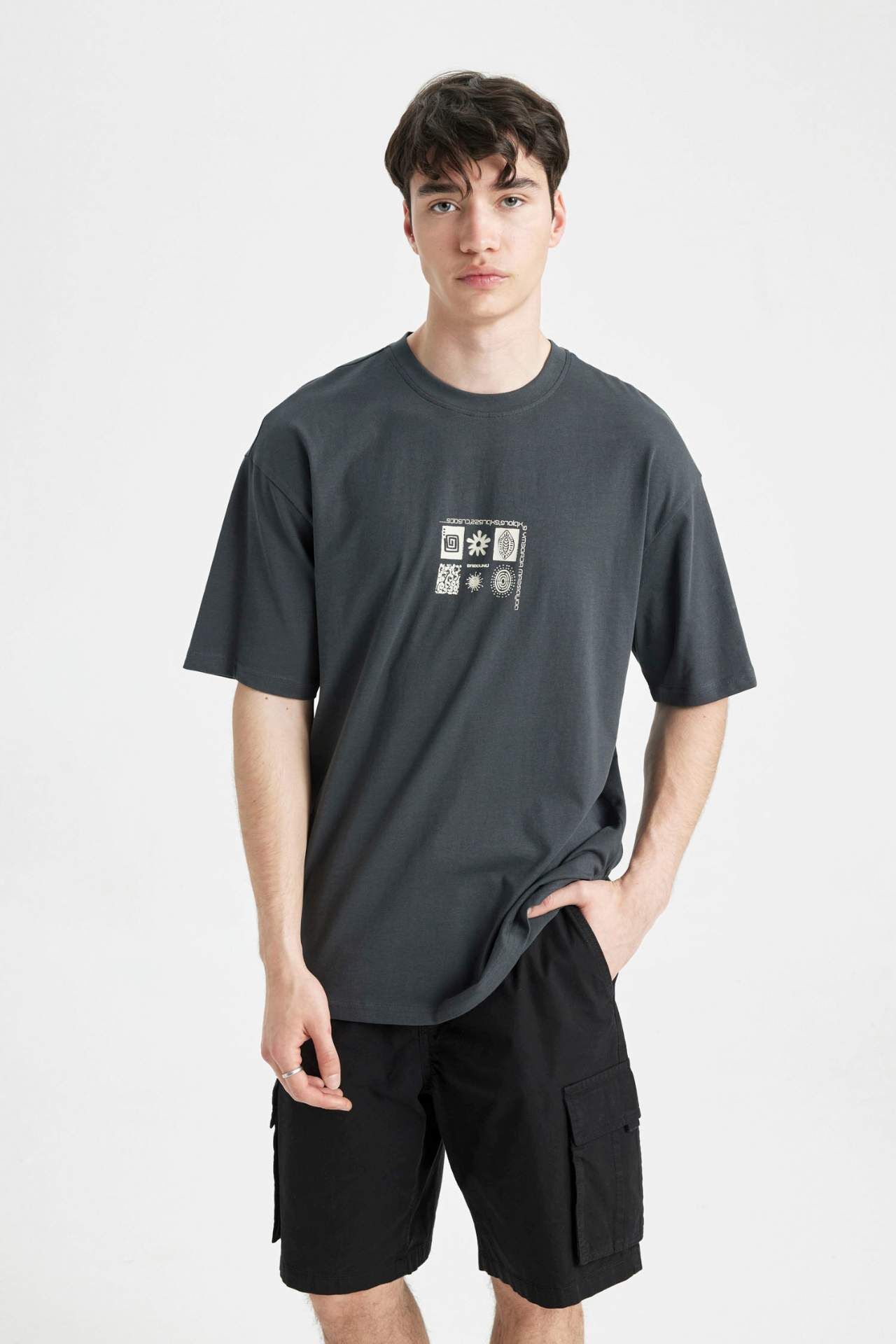 DeFacto DeFactoFit Comfort Fit Bisiklet Yaka Baskılı Tişört C4085AX24SMAR231