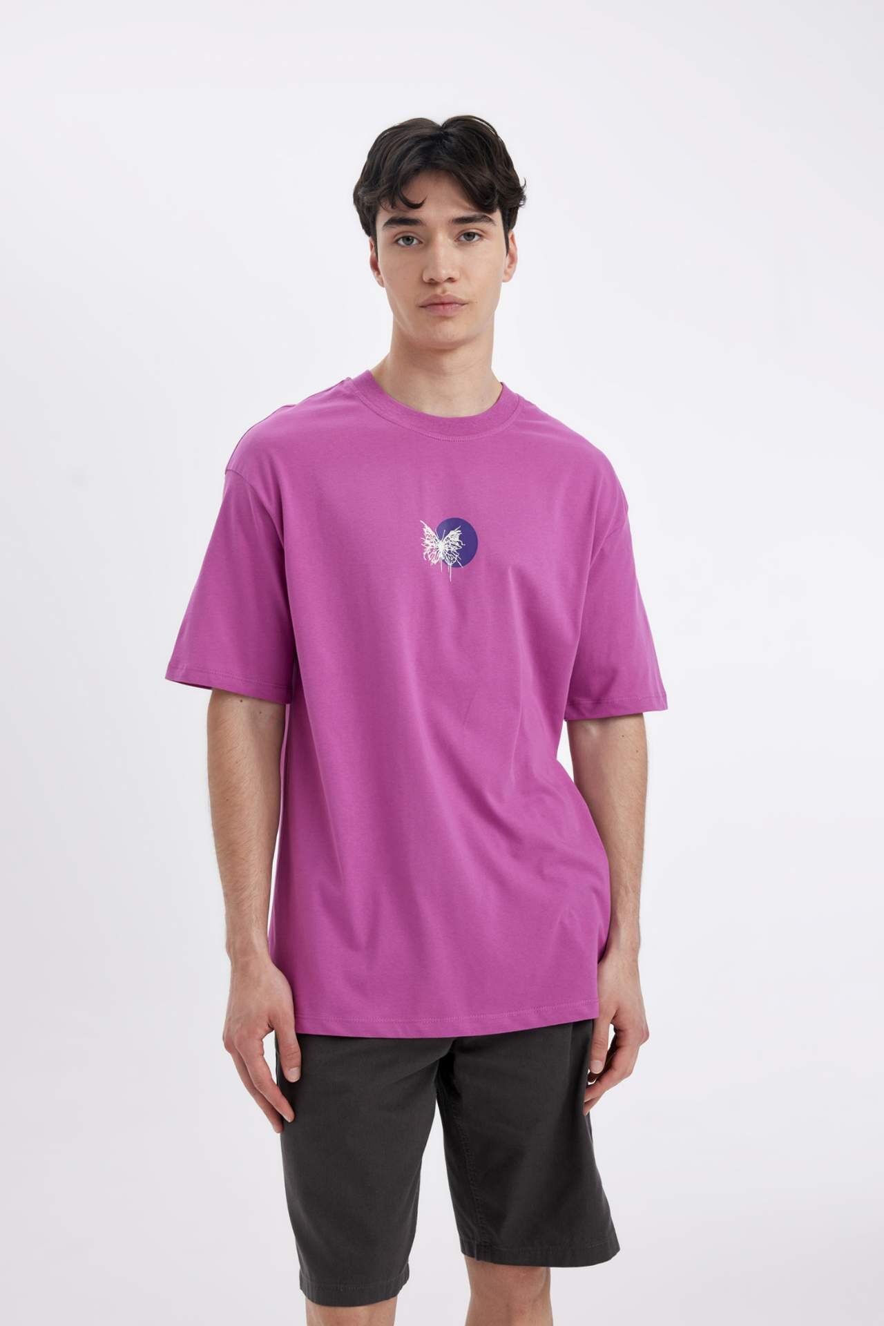 DeFactoFit Comfort Fit Bisiklet Yaka Sırt Baskılı Kısa Kollu Tişört C4089AX24SMPR191