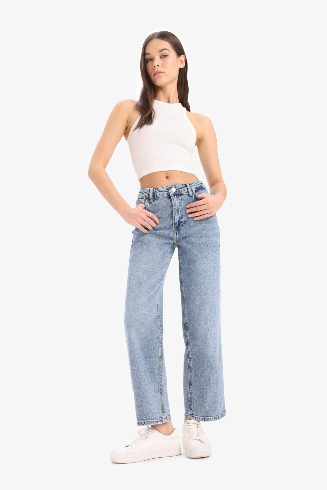 DeFacto Comfort Straight Yüksek Bel Bilek Boy Jean Yıkamalı Pantolon D8155AX25SMNM28