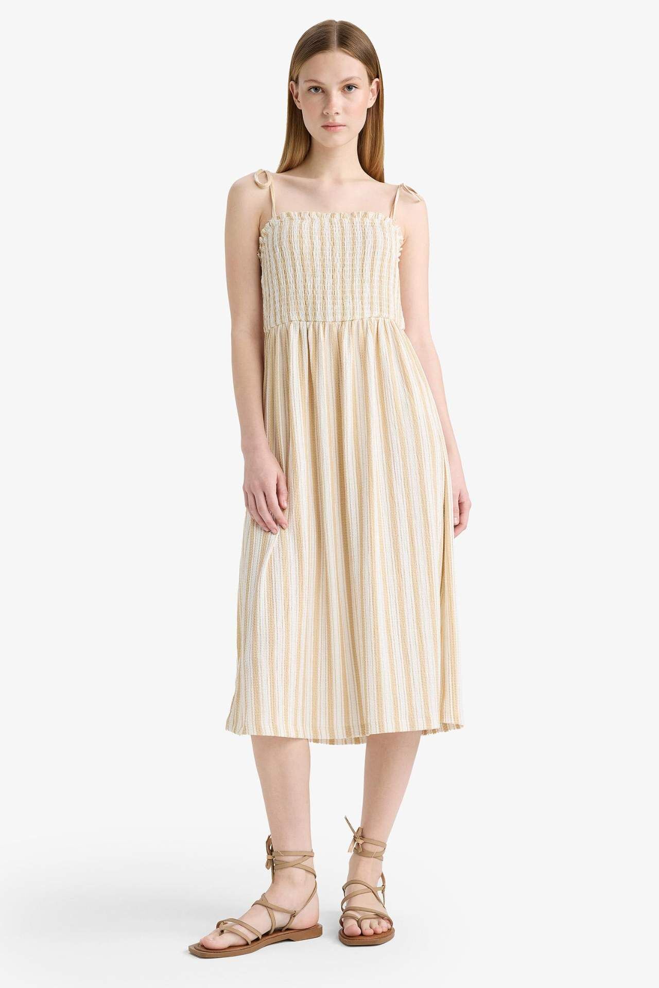 Coool Askılı Çizgili Bürümcük Askılı Midi Elbise