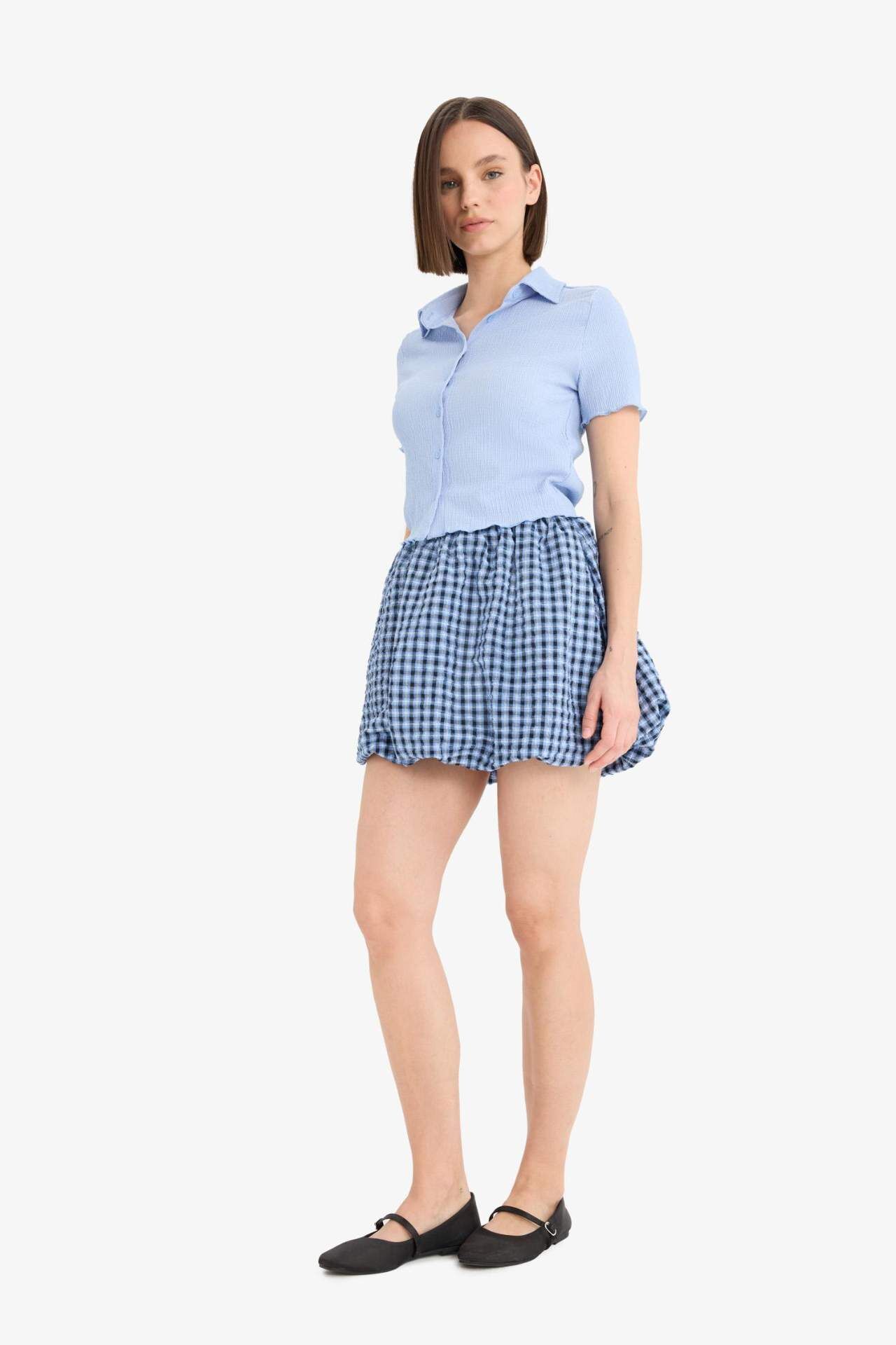 Coool Balloon Fit Kareli Normal Bel Tafta Mini Etek