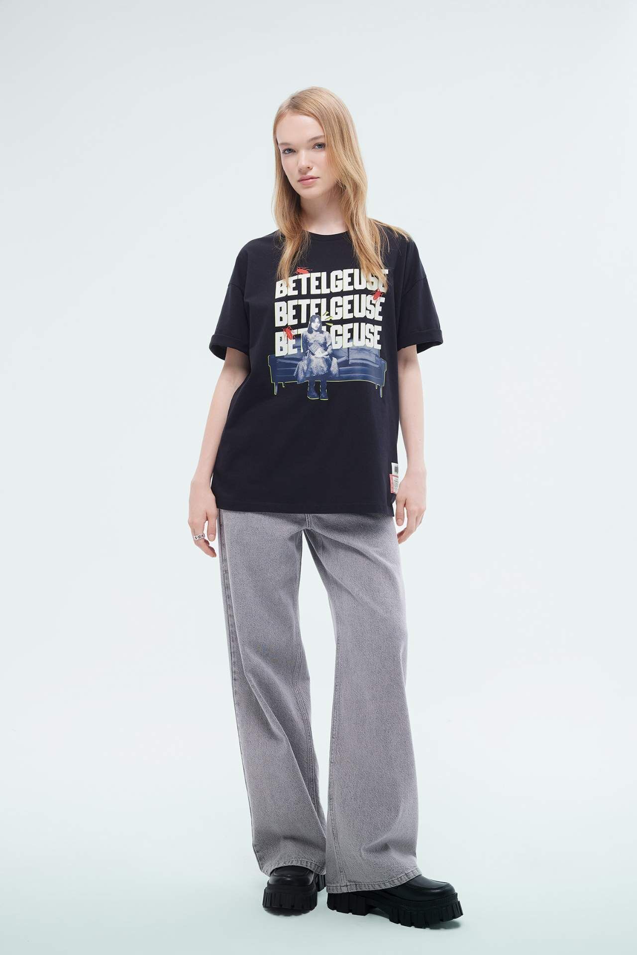 Beetlejuice oversize geniş kalıp bisiklet yaka kısa kollu tişört, rahat oversize kesimiyle günlük kombinlere özgün bir stil katar. Yumuşak dokusu ve ikonik Beetlejuice tasarımıyla dikkat çekici bir görünüm sunar. Konforlu yapısıyla gün boyu rahatlık sağlar. Pamuk 100%,Pamuk 100%