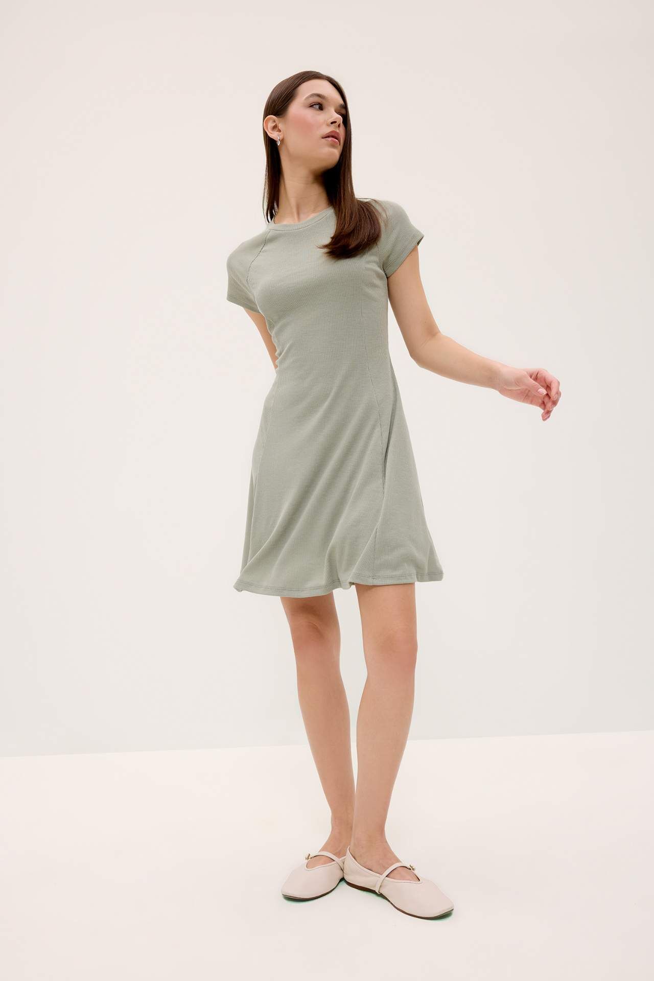 Coool Bisiklet Yaka Basic Düz Fitilli Kaşkorse Kısa Kollu Mini Elbise