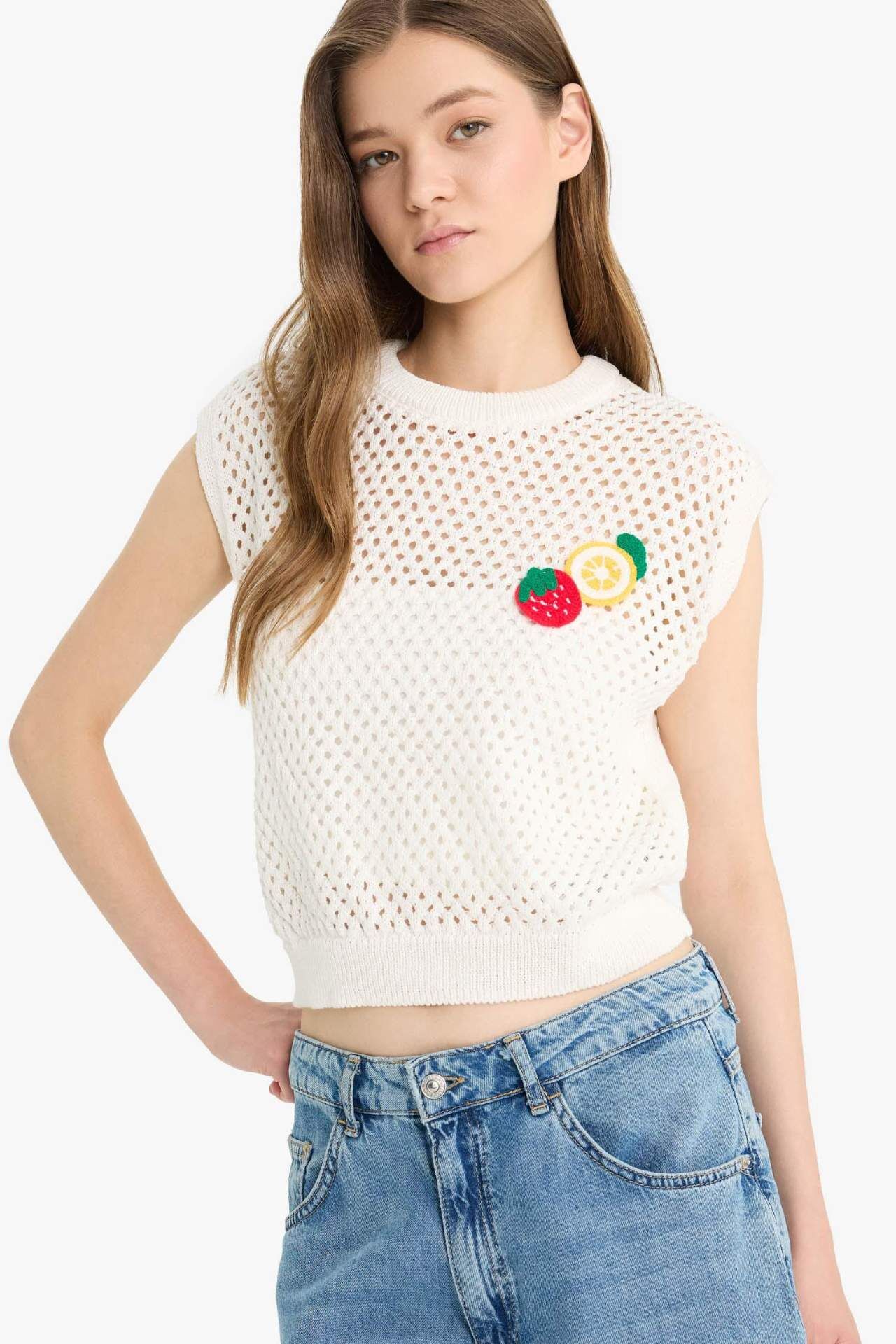 DeFacto Coool Bisiklet Yaka Meyve Nakışlı Kroşe Süveter