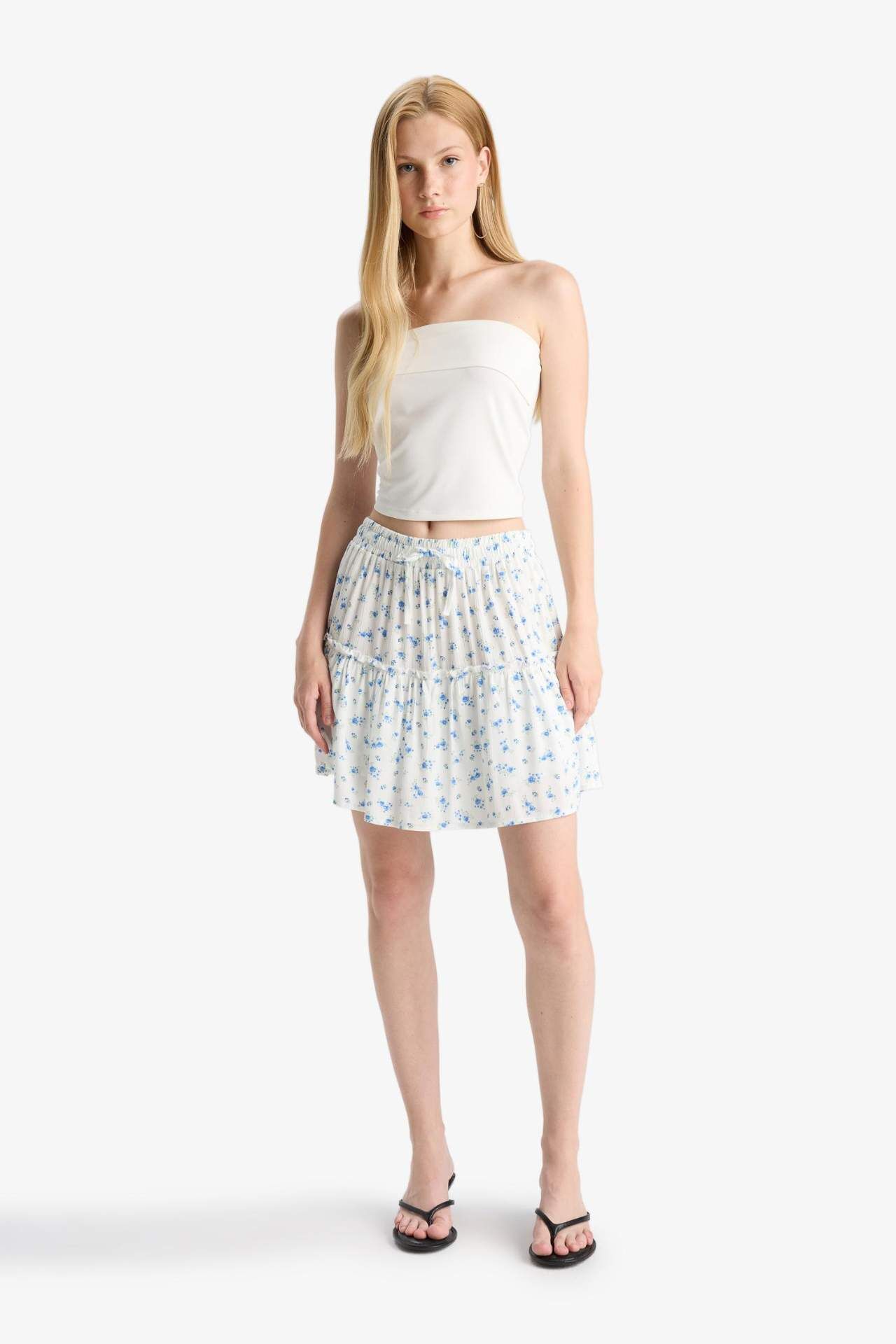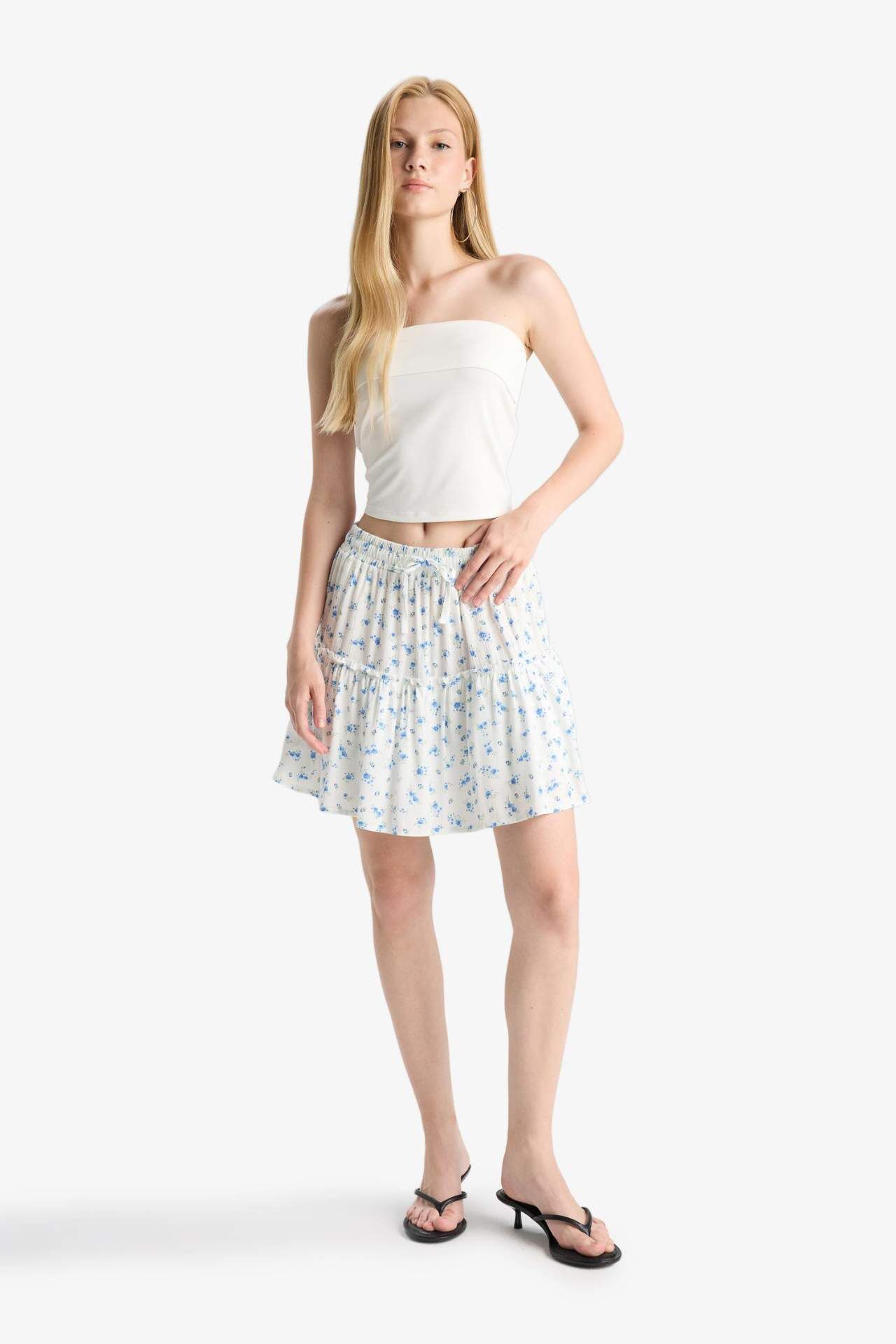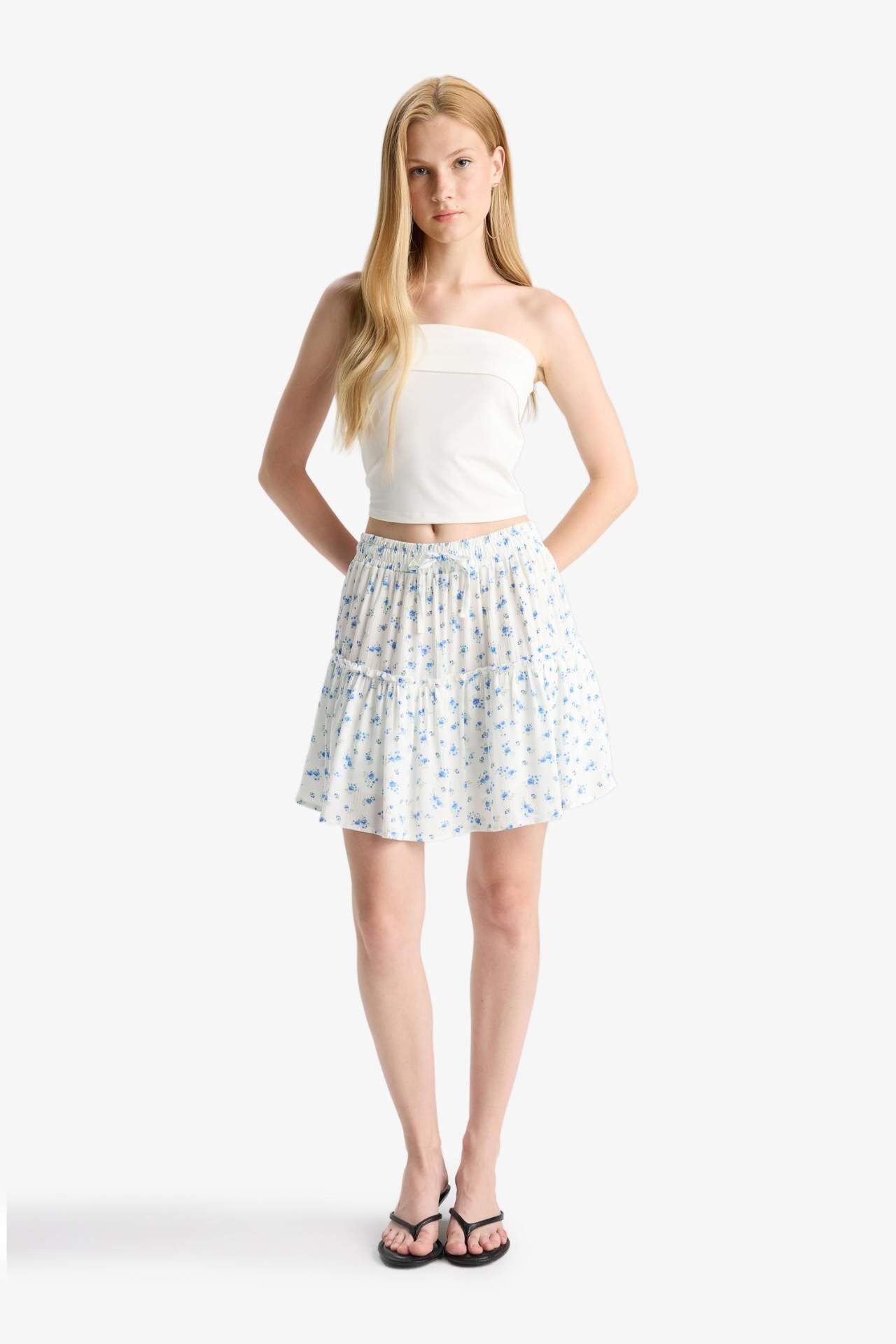 Coool Desenli Yüksek Bel Penye Astar Krinkıl Viskon Mini Etek F7223AX25HSBE552