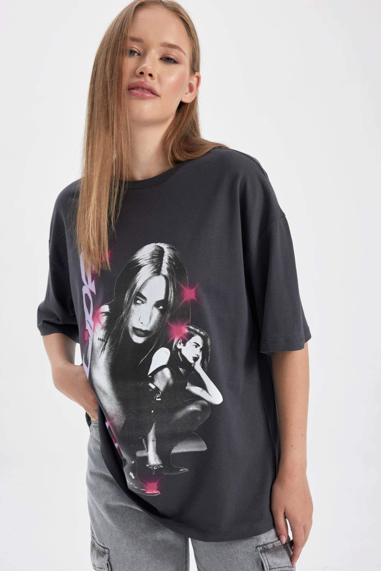 DeFacto DeFactoFit Coool Dua Lipa Oversize Fit Baskılı Kısa Kollu Tişört B2970AX23HSAR141