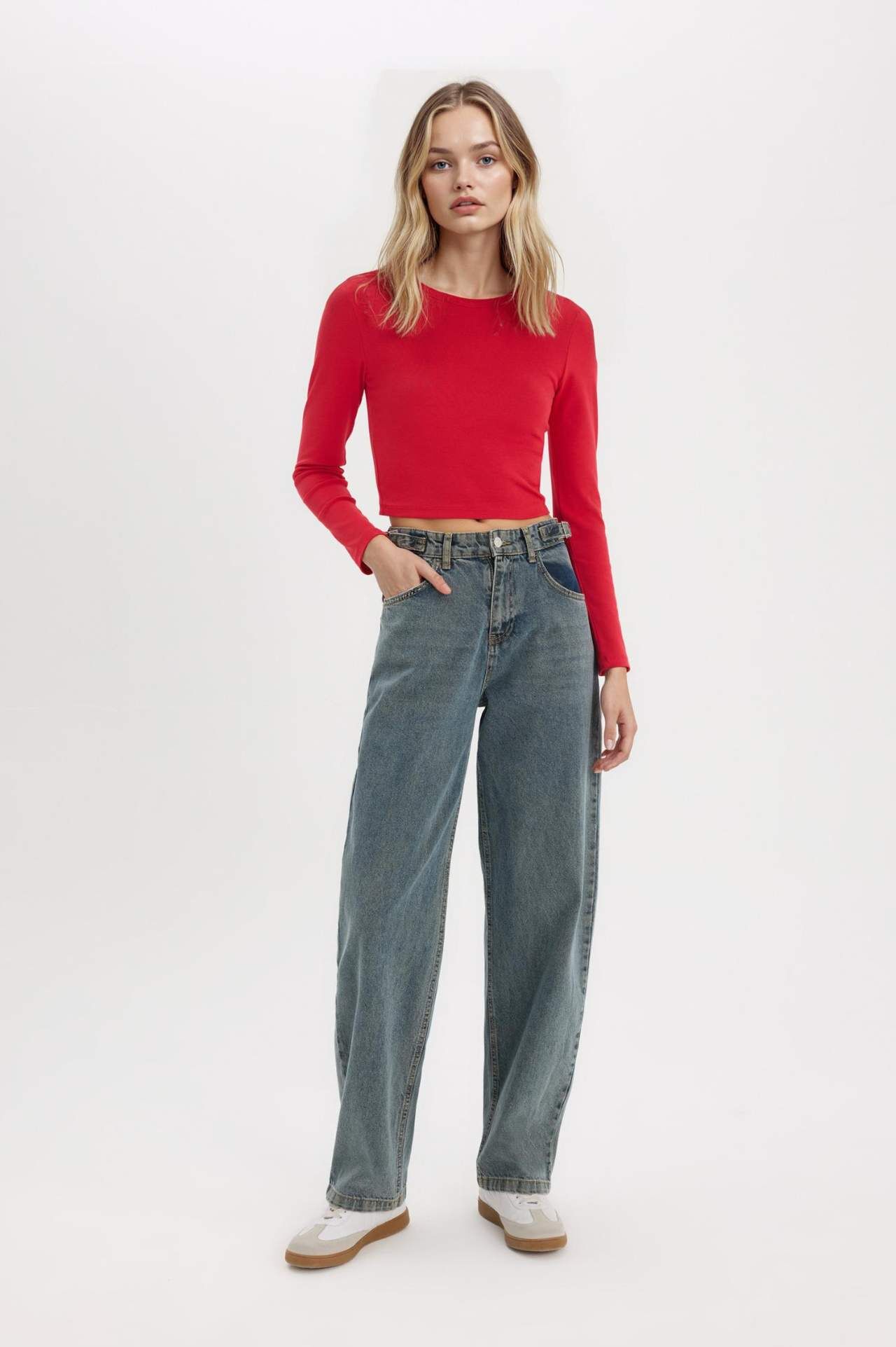 Coool Fitted Basic Düz Ribana Uzun Kollu Kırmızı Tişört