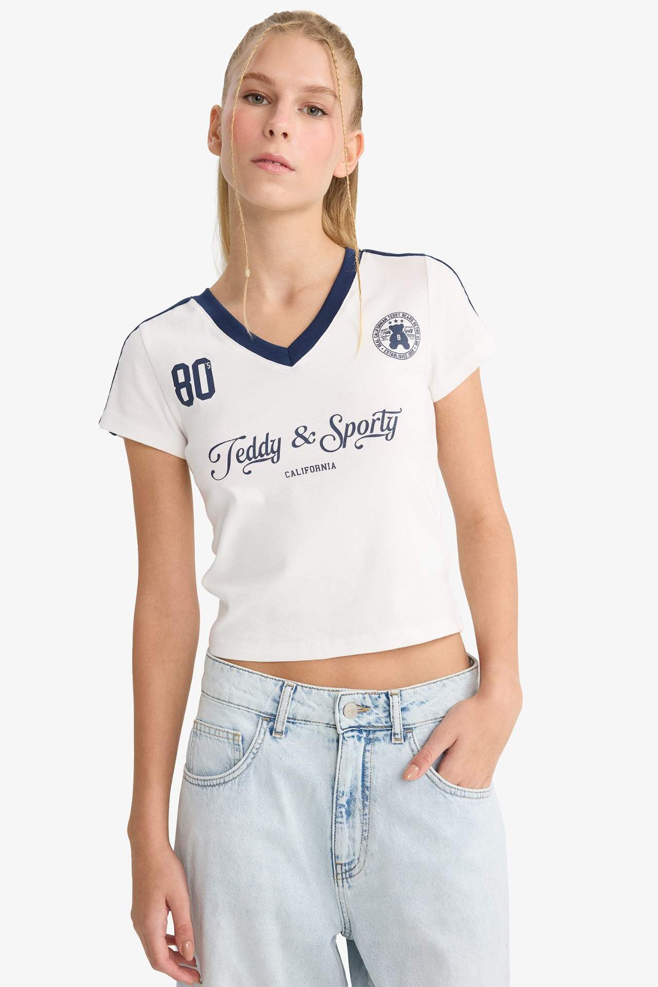 Fitted V yaka tişört, ribana dokusu ve vücuda oturan kesimiyle şık bir duruş sunar. Modern baskı detayı ve kısa kollu tasarımıyla günlük stilinize enerjik bir dokunuş katar. Pamuk 97%,Elastan 3%,Pamuk 97%,Elastan 3%,Pamuk 97%,Elastan 3%,Pamuk 97%,Elastan 3%,Pamuk 97%,Elastan 3%,Pamuk 97%,Elastan 3%,Pamuk 97%,Elastan 3% Manken Bedeni: Göğüs: 0 Boy: 1,71 Basen: 0 Bel: 58