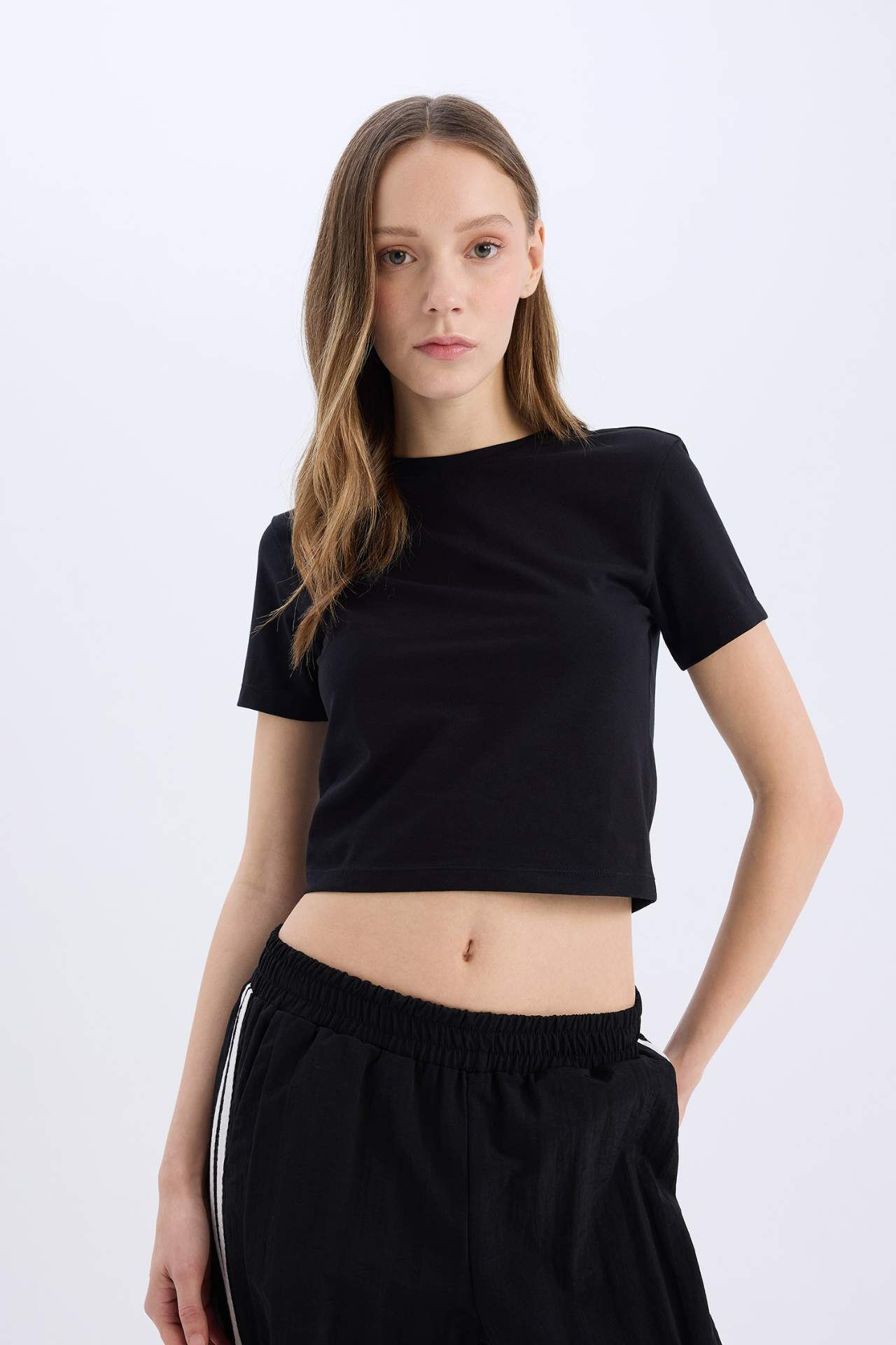 Coool Fitted Bisiklet Yaka Basic Düz Kısa Kollu Tişört Z8790AZ25SMBK81