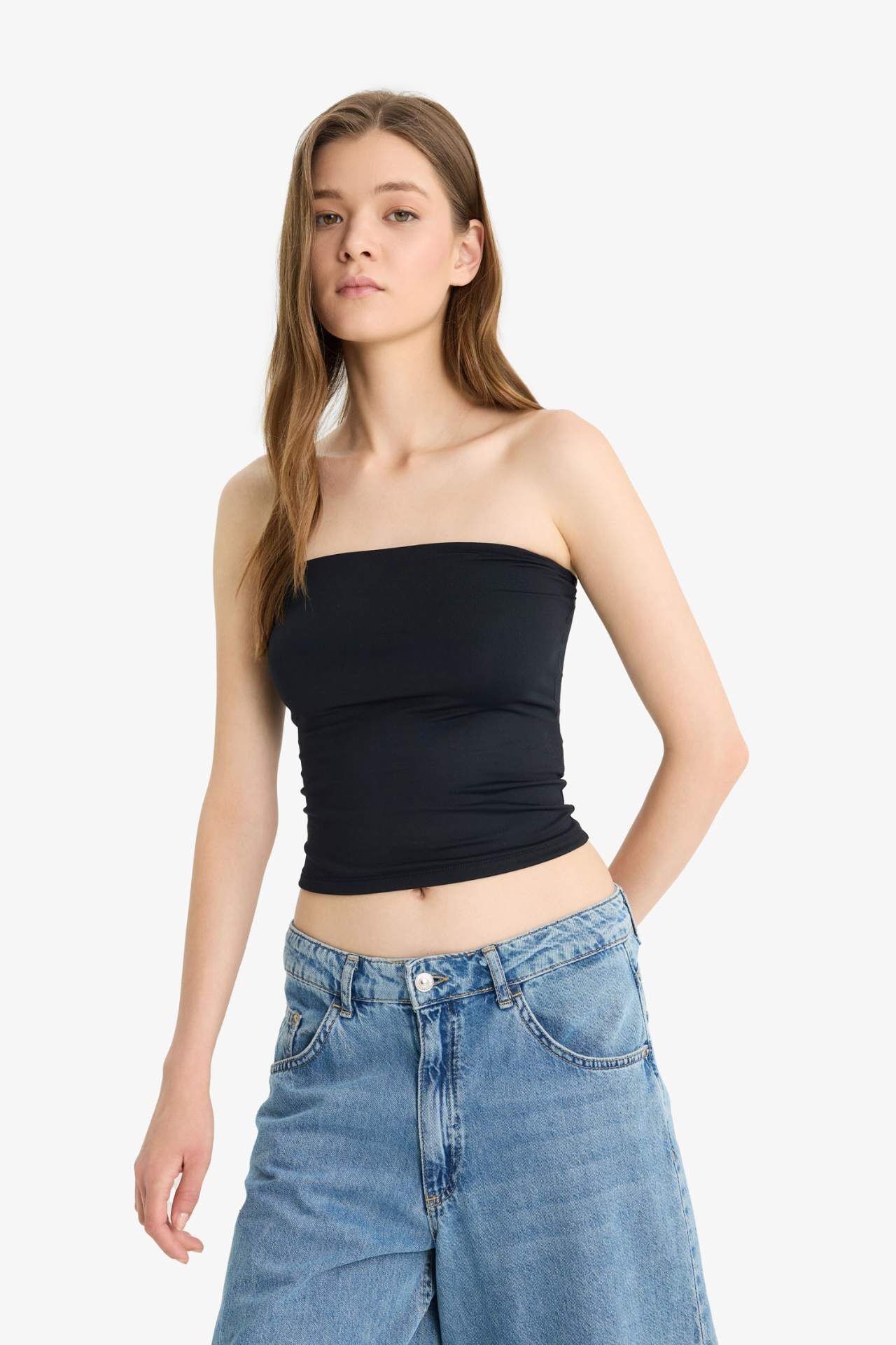 DeFacto Coool Fitted Crop Straplez Siyah Atlet