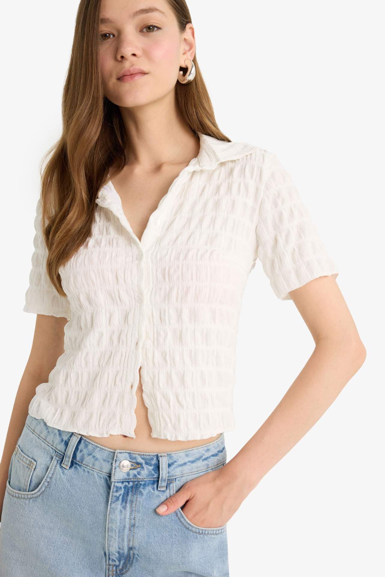Dokulu kumaşı ve fitted kesimiyle bu kısa kollu gömlek, hem şık hem de modern bir görünüm sunar. Hafif ve rahat yapısı sayesinde günlük ve ofis stiline kolayca uyum sağlar. Elastan 2%,Poliester 98%,Elastan 2%,Poliester 98%,Elastan 2%,Poliester 98%,Elastan 2%,Poliester 98%,Elastan 2%,Poliester 98%,Elastan 2%,Poliester 98%,Elastan 2%,Poliester 98% Manken Bedeni: Göğüs: 70 Boy: 1,77 Basen: 86 Bel: 59