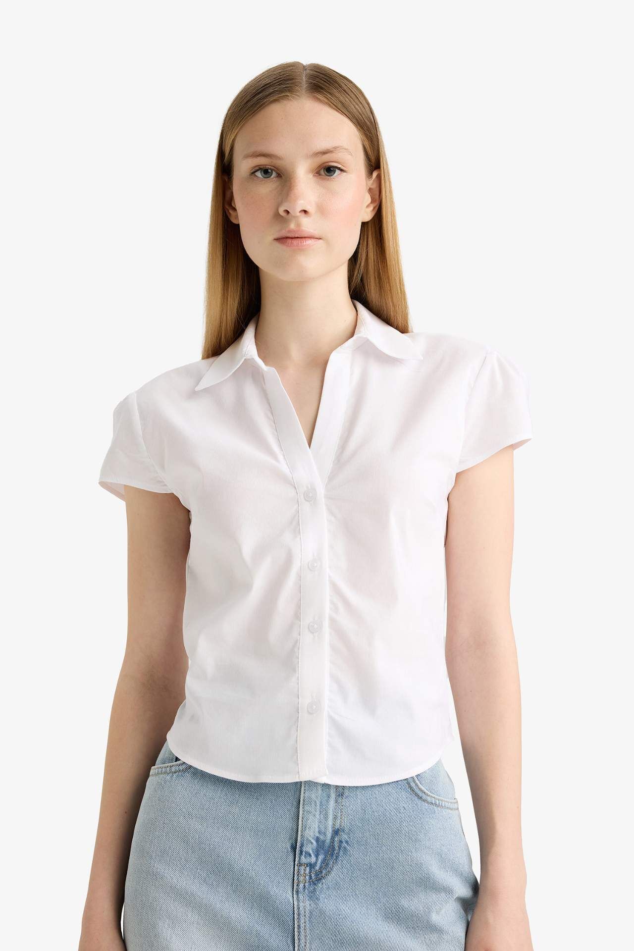 Coool Fitted Poplin Kısa Kollu Beyaz Gömlek