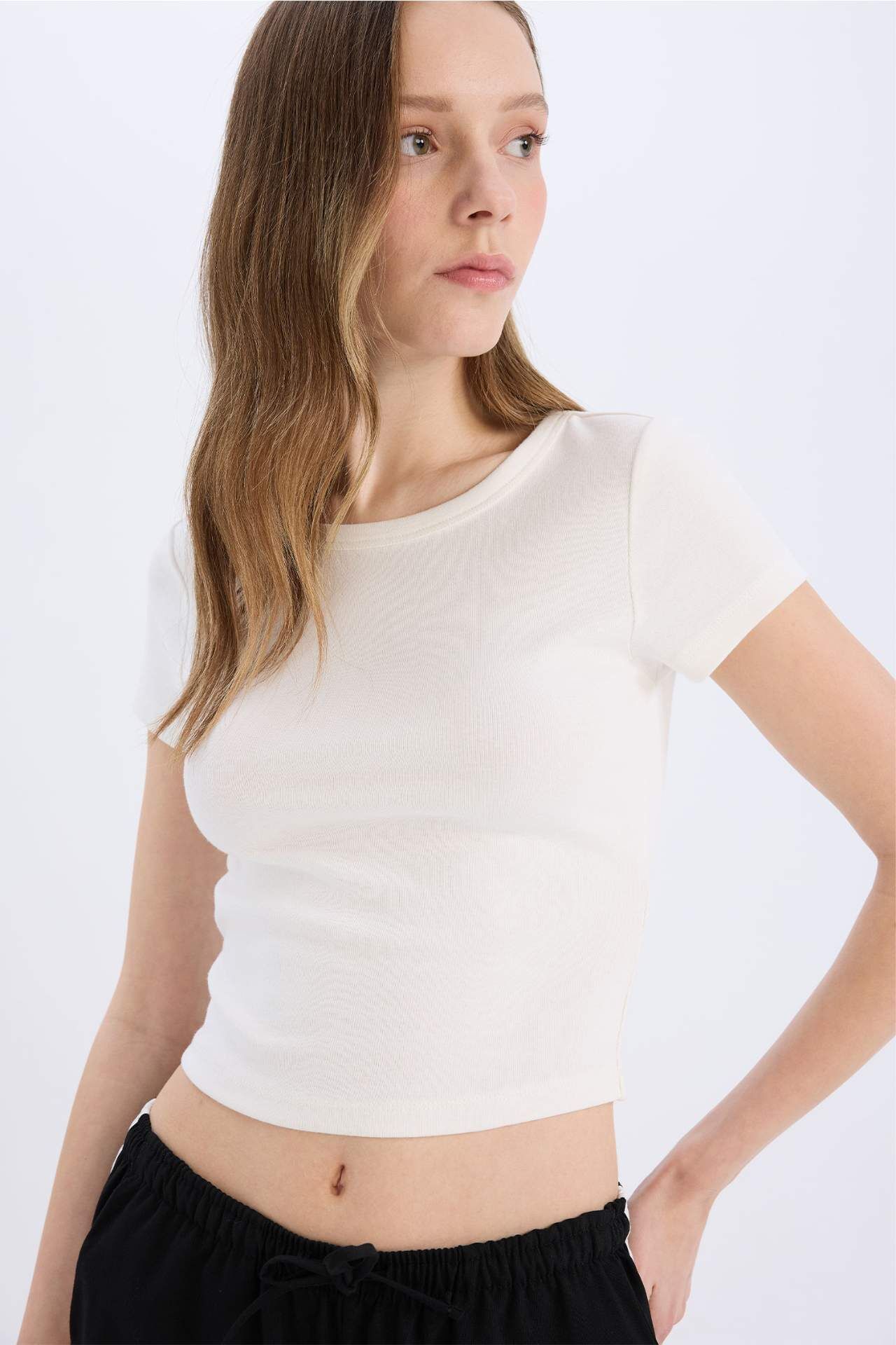 DeFacto Coool Fitted Ribana Basic Düz Kısa Kollu Tişört