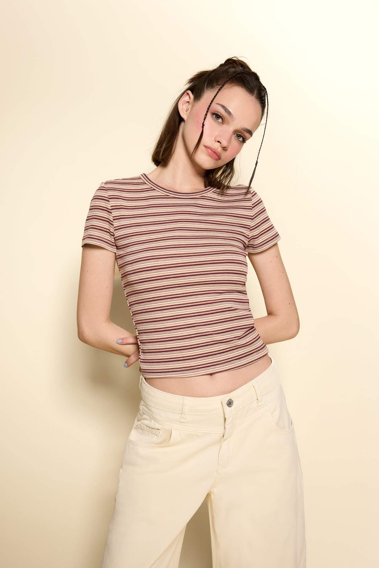 Zarif çizgileri ve ribana dokusuyla öne çıkan bu fitted tişört, vücuda oturan kesimiyle modern bir duruş sergiliyor. Bisiklet yaka detayı ise sade şıklığı tamamlayarak günlük stilinize dinamik bir dokunuş katıyor. Pamuk 96%,Elastan 4%,Pamuk 96%,Elastan 4%,Pamuk 96%,Elastan 4%,Pamuk 96%,Elastan 4%,Pamuk 96%,Elastan 4%,Pamuk 96%,Elastan 4%