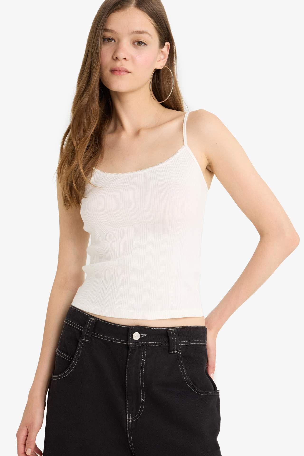Fitted kesimi ve U yaka tasarımıyla bu fitilli kaşkorse beyaz atlet, vücuda oturarak şık bir siluet sunar. Yumuşak ve esnek dokusuyla gün boyu rahatlık sağlar. Hem tek başına hem de katmanlı kombinlerde ideal bir temel parçadır. Pamuk 97%,Elastan 3%,Pamuk 97%,Elastan 3%,Pamuk 97%,Elastan 3%,Pamuk 97%,Elastan 3%,Pamuk 97%,Elastan 3%,Pamuk 97%,Elastan 3% Manken Bedeni: Göğüs: 70 Boy: 1,77 Basen: 86 Bel: 59