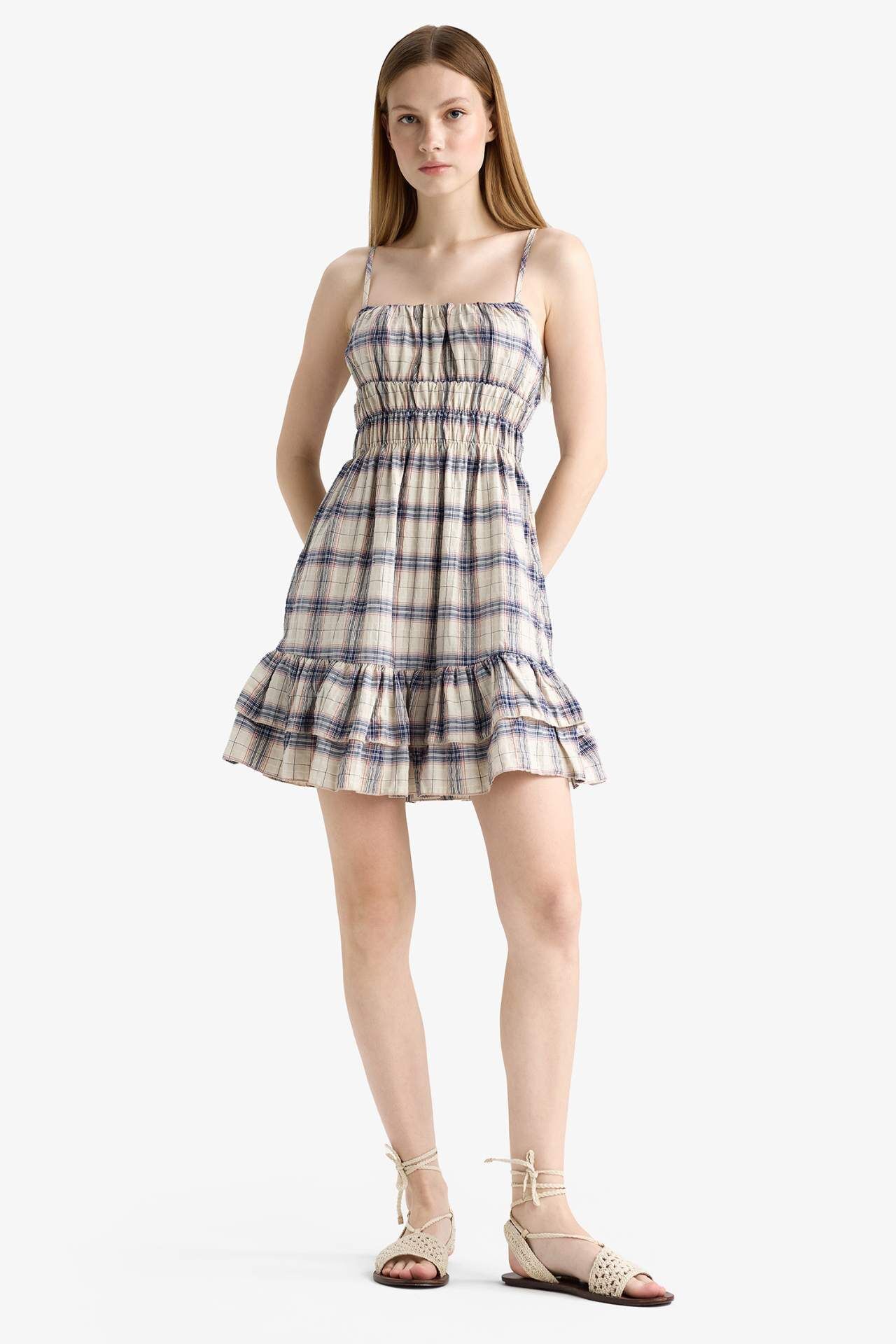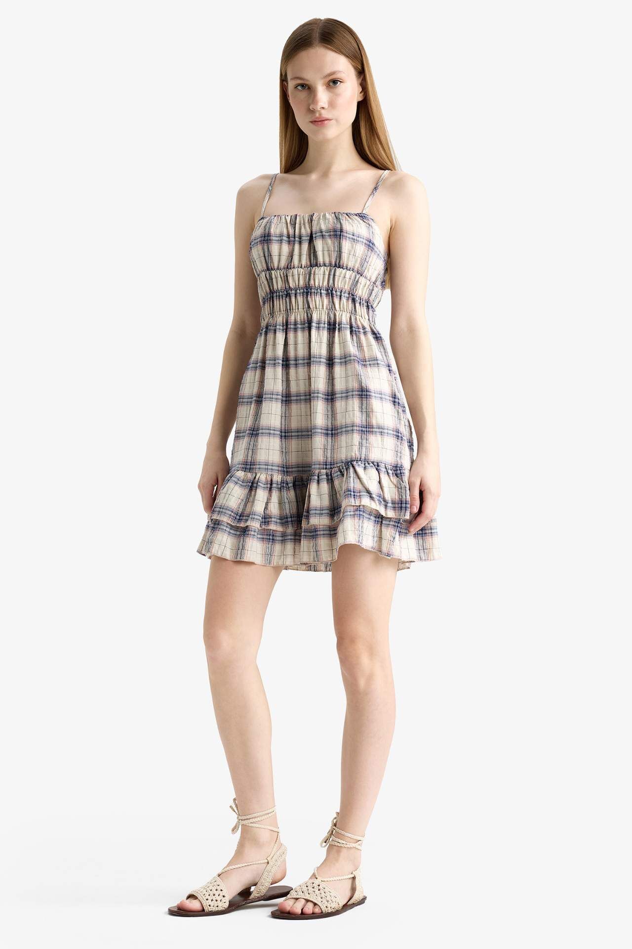 Coool Kareli Askılı Askılı Mini Elbise