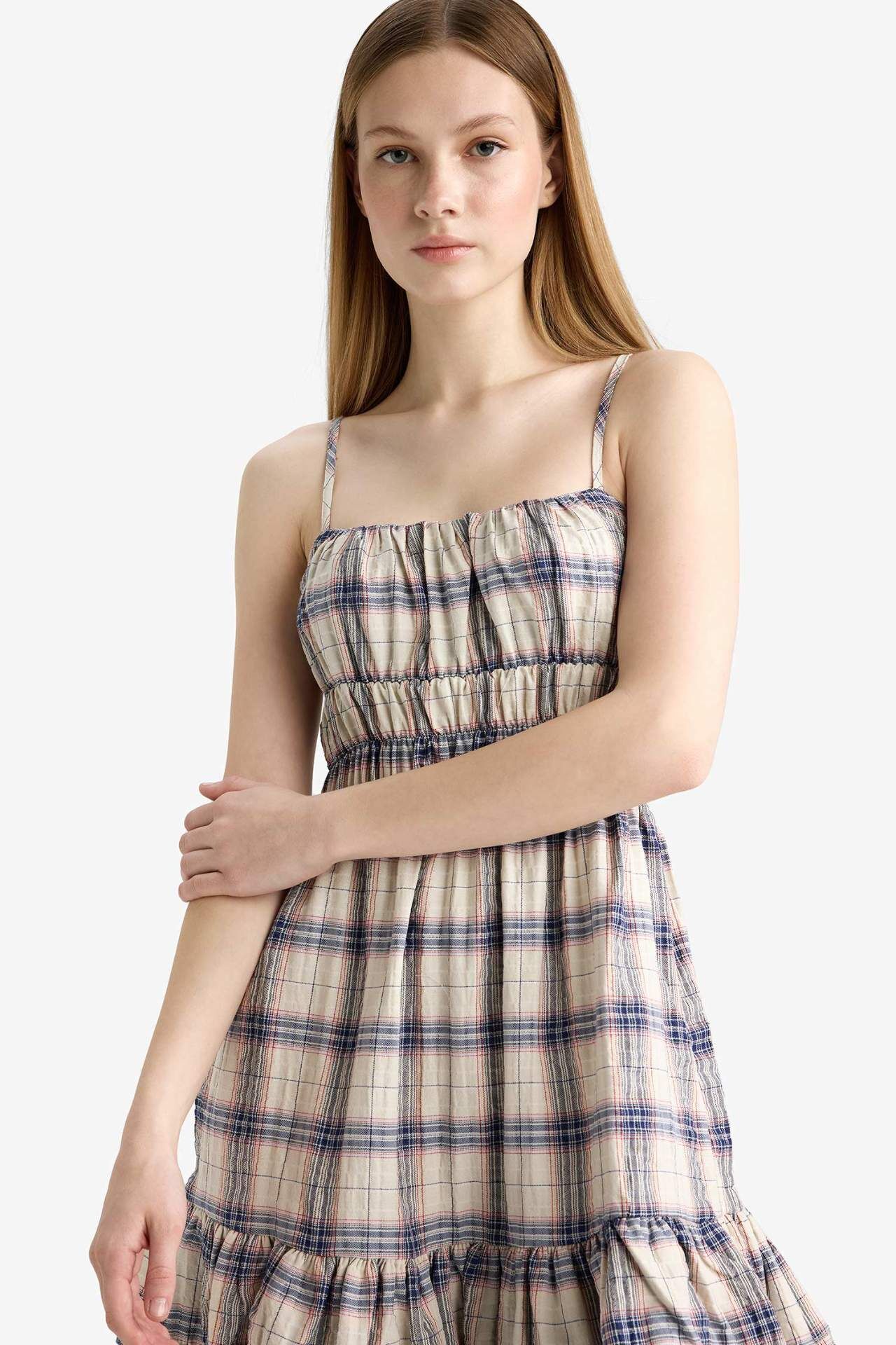 Kareli deseni ve askılı tasarımıyla bu mini elbise, şık ve neşeli bir görünüm sunar. Hafif ve rahat dokusuyla gün boyu konfor sağlar. Yaz kombinlerinde veya günlük aktivitelerde feminen bir stil için ideal bir parçadır. Pamuk 65%,Elastan 1%,Poliester 34%,Pamuk 65%,Elastan 1%,Poliester 34%,Pamuk 65%,Elastan 1%,Poliester 34%,Pamuk 65%,Elastan 1%,Poliester 34%,Pamuk 65%,Elastan 1%,Poliester 34%,Pamuk 65%,Elastan 1%,Poliester 34% Manken Bedeni: Göğüs: 80 Boy: 1,72 Basen: 90 Bel: 57