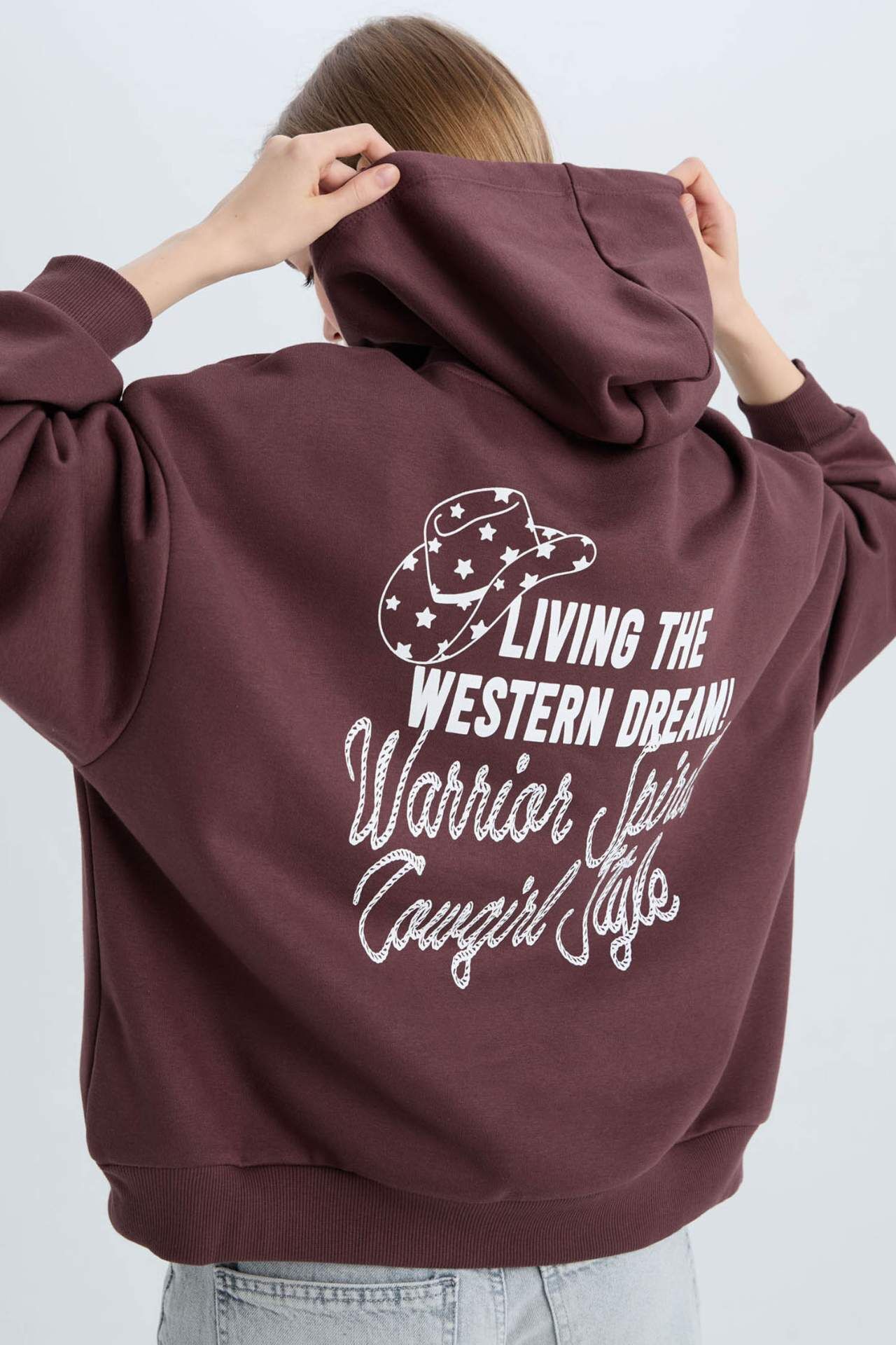 DeFacto Coool Loose Fit Kapüşonlu Sırt Baskılı Kalın Sweatshirt