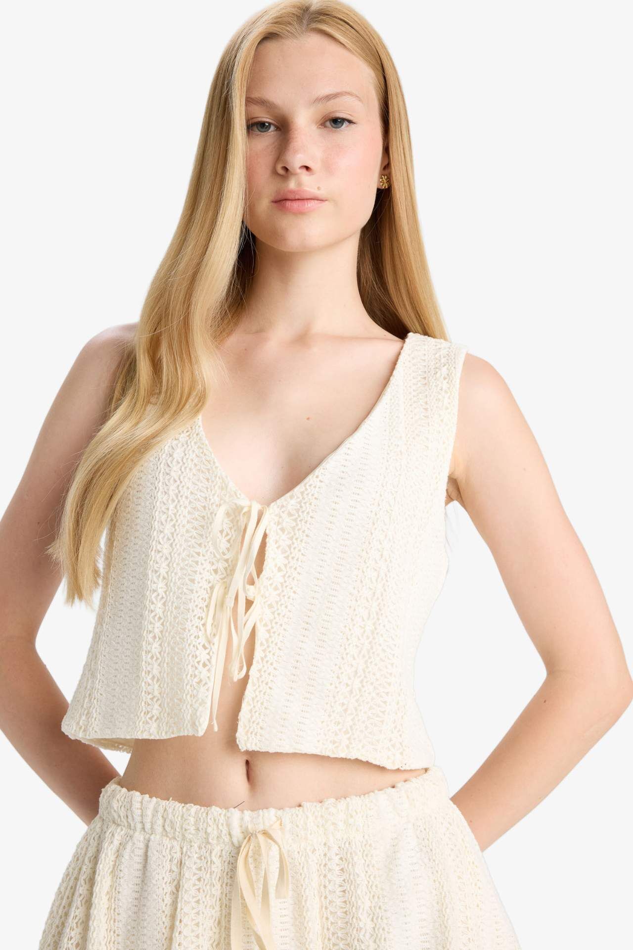 Loose Fit V yaka triko görünümlü önden bağlamalı kolsuz bluz, rahat kesimi ve şık bağlama detayıyla modern bir stil sunar. Hafif triko dokusu sayesinde her mevsim konforlu kullanım sağlar. Günlük ve özel kombinlerinizin vazgeçilmezi. Pamuk 83%,Poliester 17%,Poliester 100%,Pamuk 83%,Poliester 17%,Poliester 100%,Pamuk 83%,Poliester 17%,Poliester 100%,Pamuk 83%,Poliester 17%,Poliester 100%,Pamuk 83%,Poliester 17%,Poliester 100%,Pamuk 83%,Poliester 17%,Poliester 100% Manken Bedeni: Göğüs: 83 Boy: 1,72 Basen: 90 Bel: 61