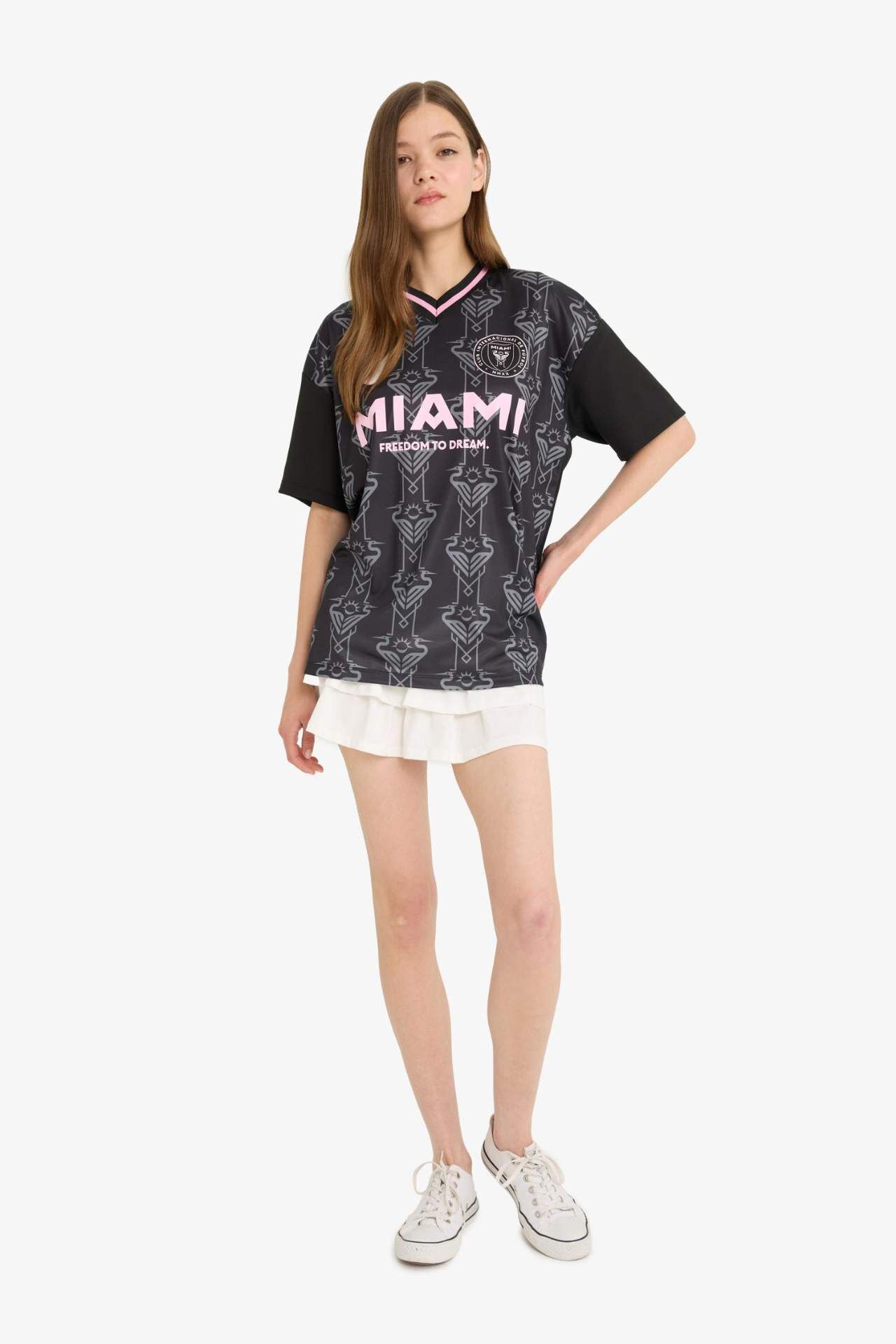 DeFacto Coool MLS Oversize Geniş Kalıp Baskılı Jakarlı Kısa Kollu Tişört