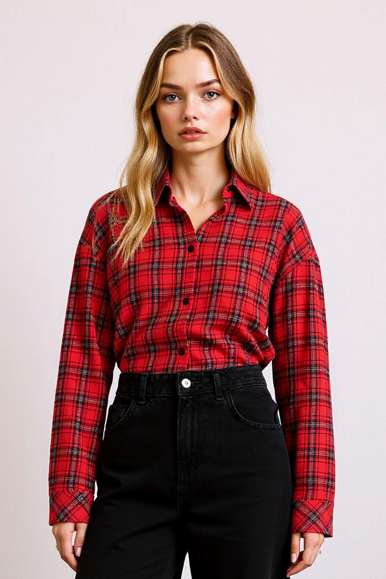 Coool Overshirt Fit Gömlek Yaka Flanel Uzun Kollu Gömlek