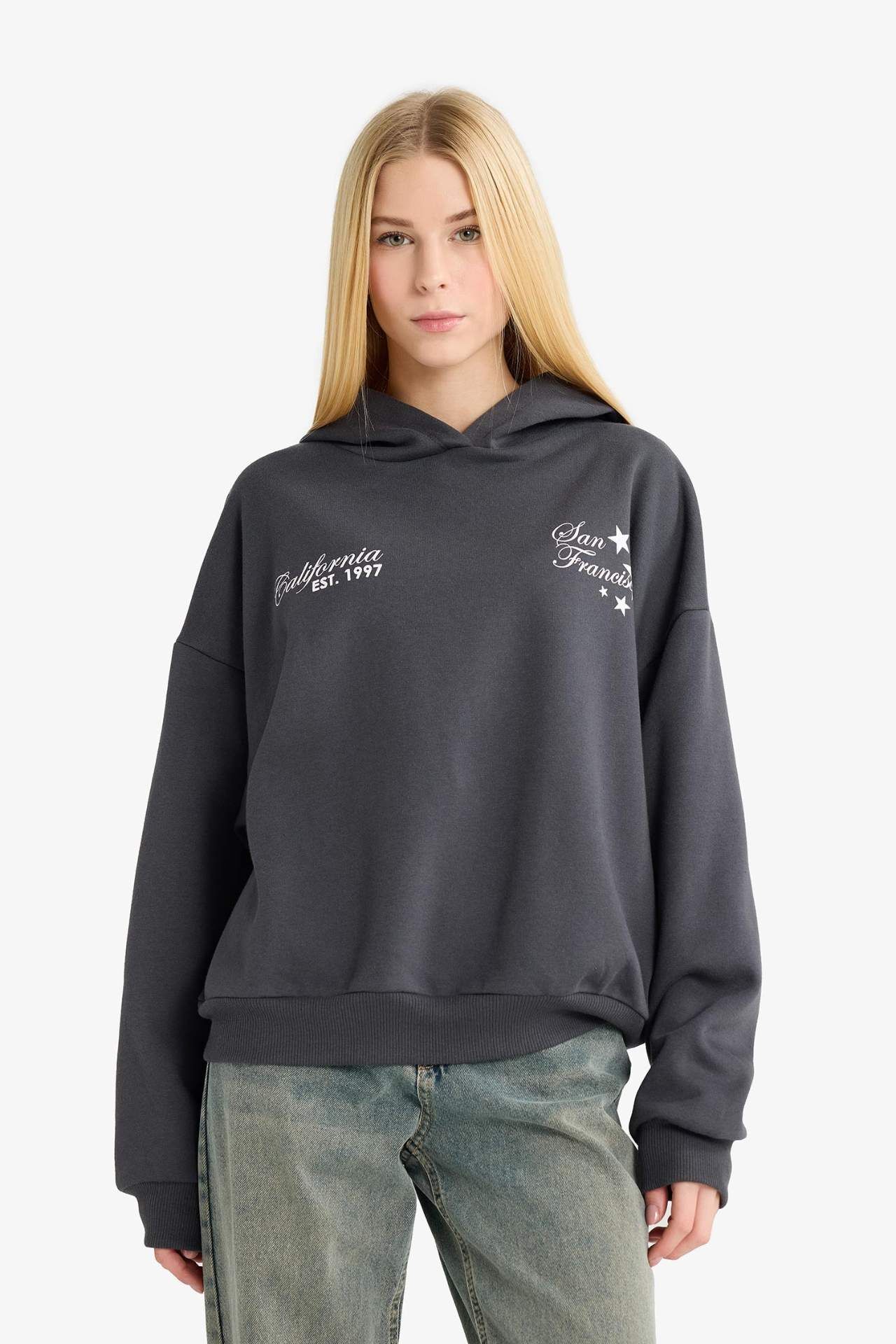 DeFacto Coool Overshirt Fit Kapüşonlu Baskılı Kalın Kumaş Sweatshirt G0180AX25WNAR104