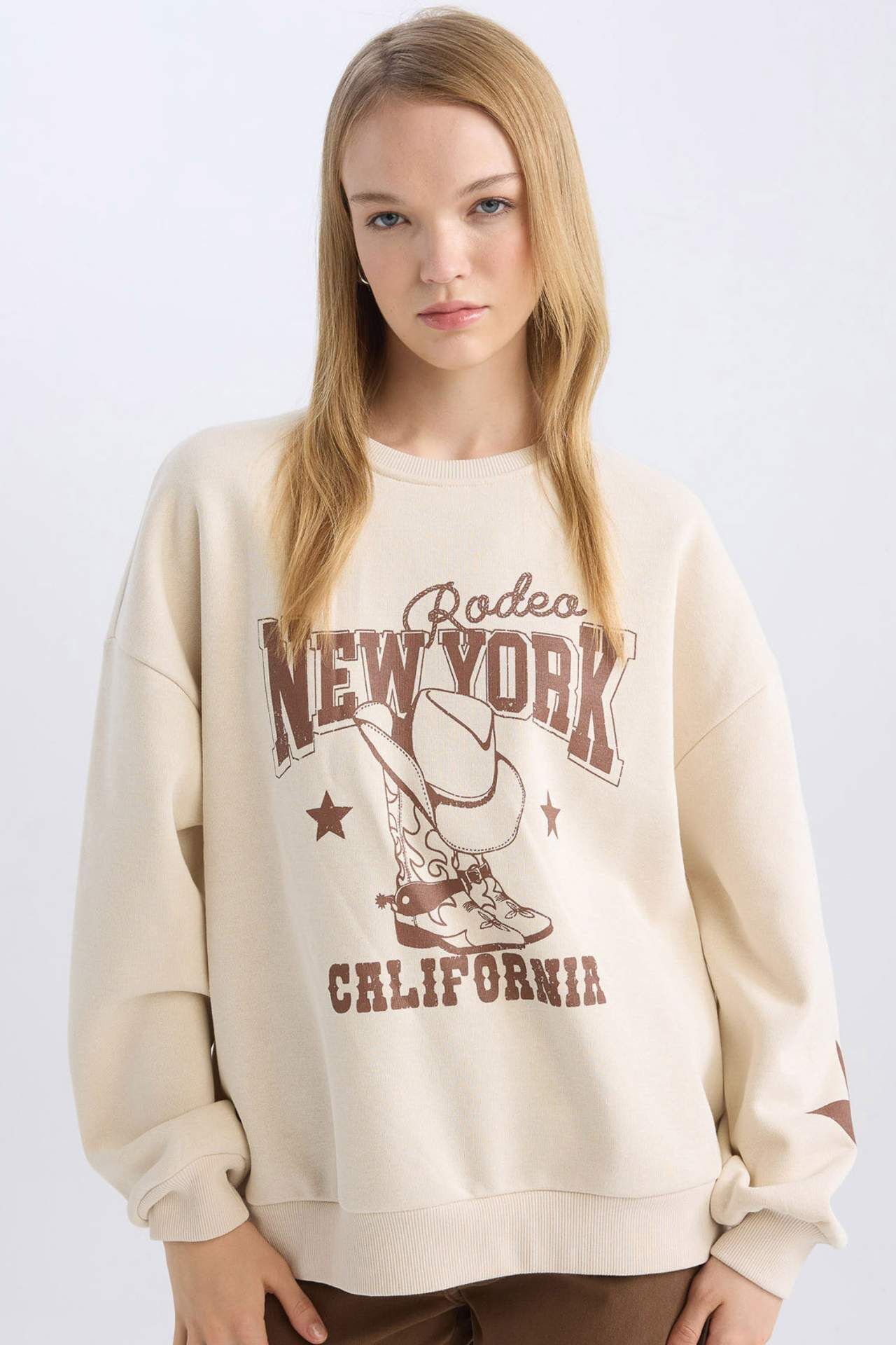 DeFacto Coool Oversize Fit Bisiklet Yaka Baskılı Kalın Kumaş Sweatshirt D5306AX24AUER42