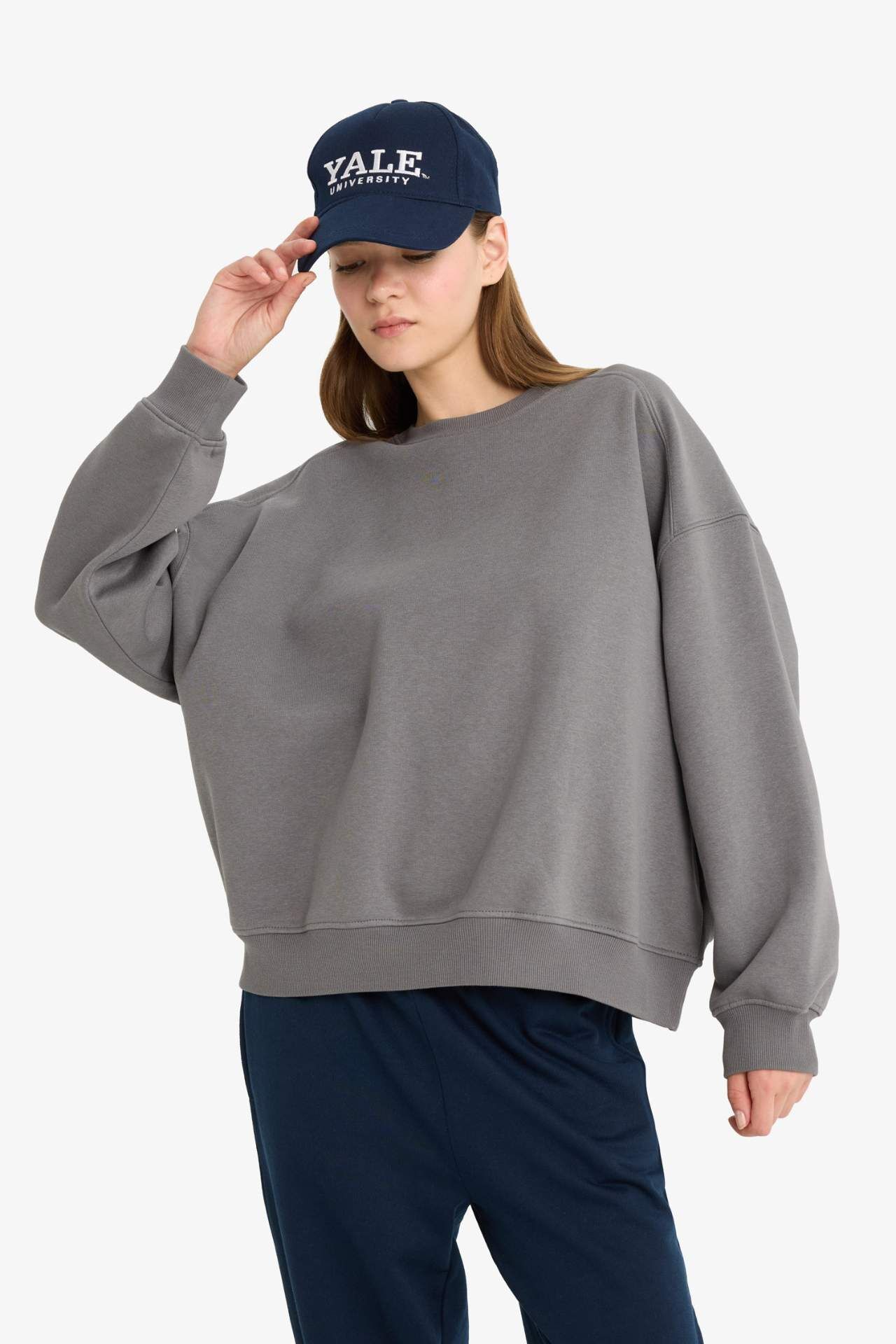 Coool Oversize Geniş Kalıp Bisiklet Yaka Basic Düz Sweatshirt